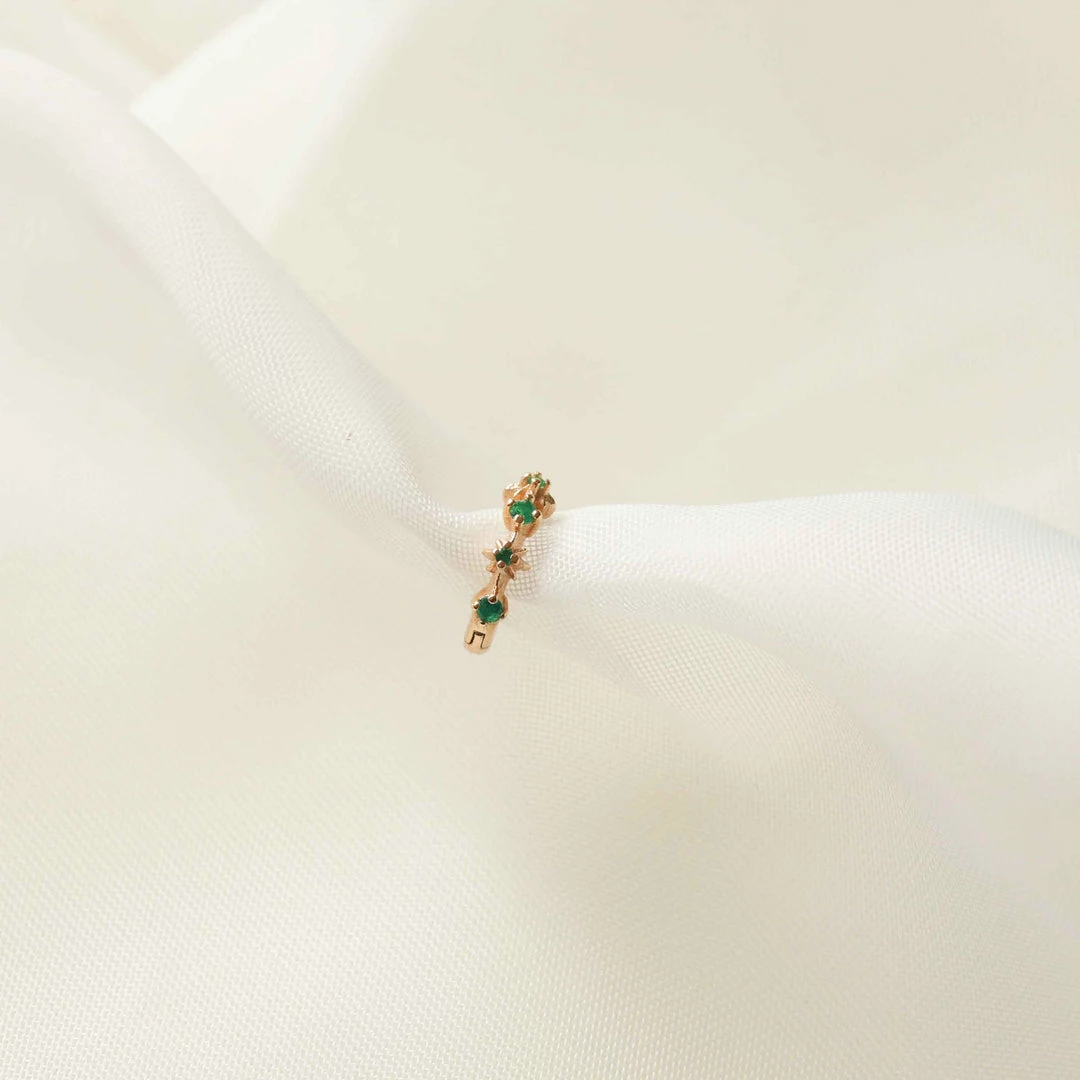 The Cosmic Emerald Clicker in Gold will make your other earrings jealous. If you’re looking for a dainty cartilage hoop, this one features emerald green cubic zirconias to add a pop of colour. You can wear this in your tragus, upper lobe, helix and forward helix piercings – so it will fit in with your existing ear stack with ease. Pair it with the Cosmic Emerald Barbell for a coorditated look.