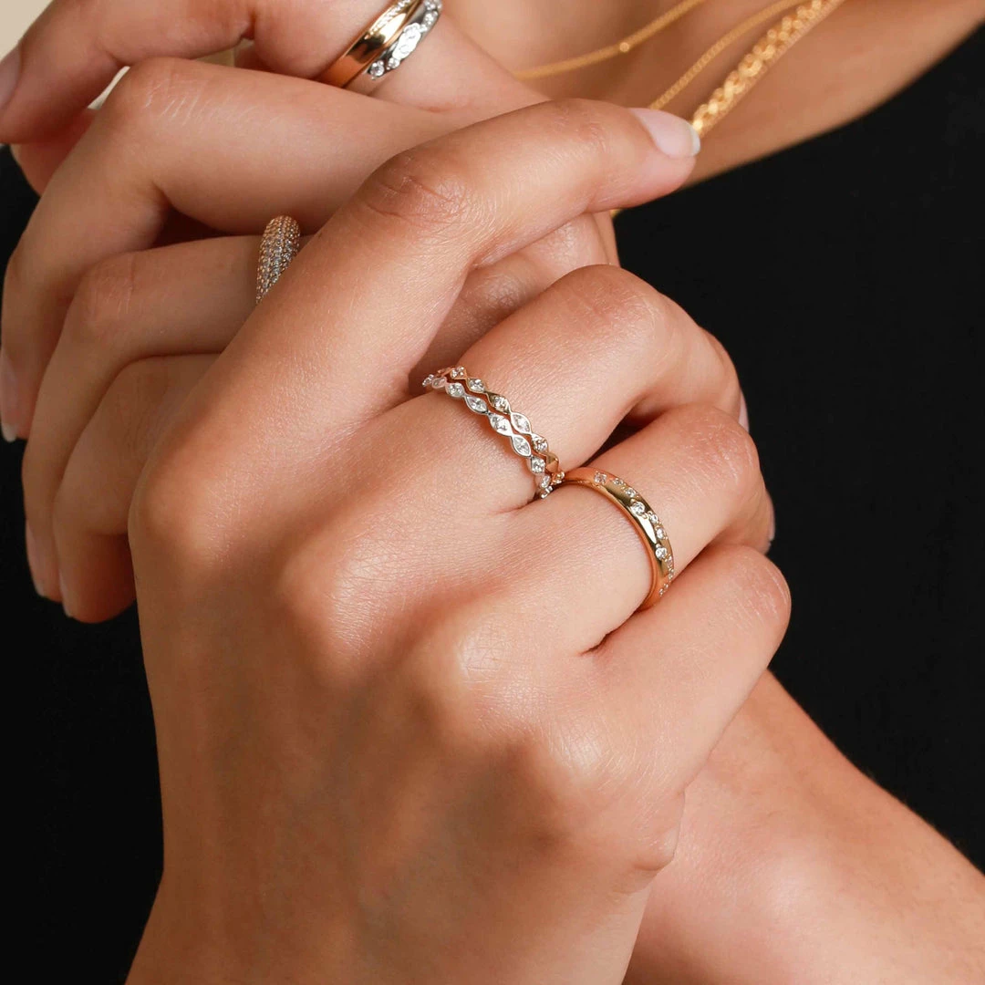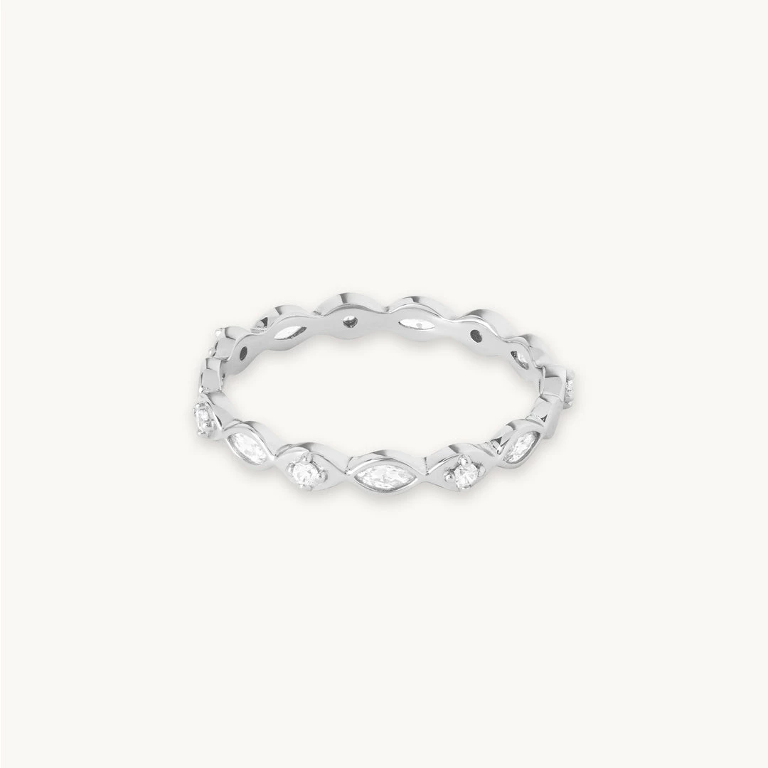 Achieve the ring stack of your dreams ~ add the Navette Crystal Band Ring in Silver to your collection for an all-out sparkling moment. With navette crystals all around, this is for when you want to let your hands do the talking. It’s on a dainty setting, so it’s easily stacked with other A&M ring styles.