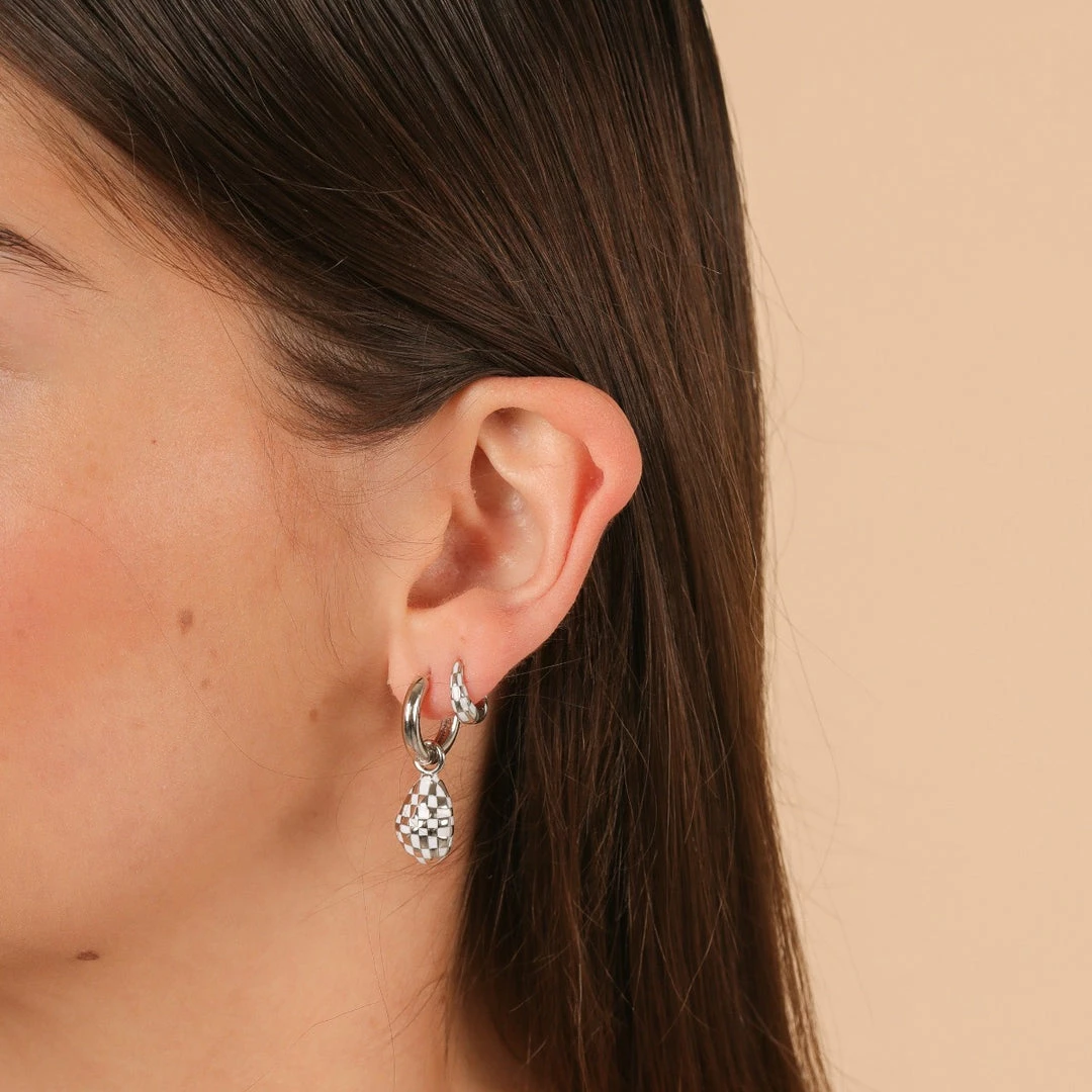 What’s your summer energy? We’re opting for fun, playful jewellery to elevate our collection. The Checkerboard Pendant Hoops feature removable 70s-inspired check charms, adding an on-trend statement to any stack. Wear them alone, or with huggies and studs.