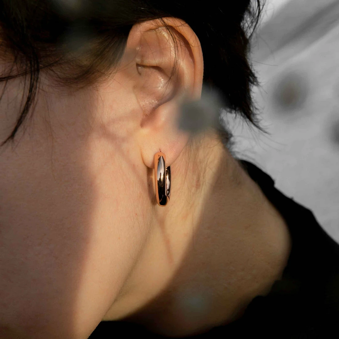 Introducing your new BFF, the Chunky Hoops in Rose Gold. These hoops are small but mighty. Best paired with huggies, cartilage hoops and a white tee for maximum cool, minimum effort.Â
