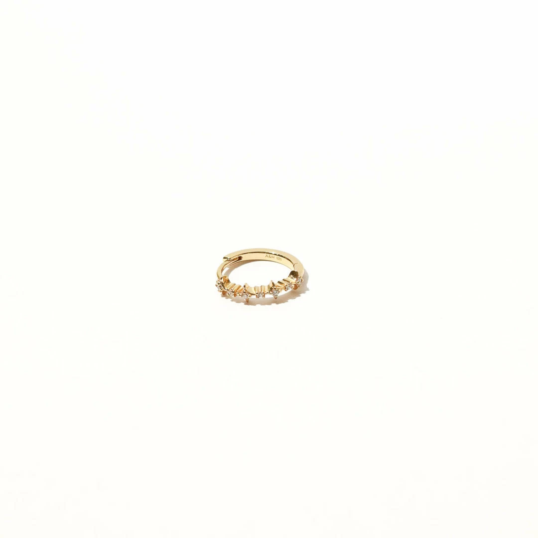 The key ingredient to achieve the stack of your dreams. The Cosmic Star 11.5mm Hoop in Gold is a mystic addition to your jewellery collection, with dainty stars around the hoop. Fitting perfectly in your lobe or conch piercings, this single hoop means you can curate your stack and get the asymmetrical look.Â