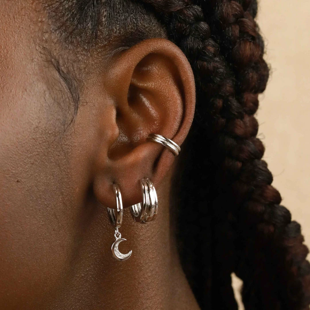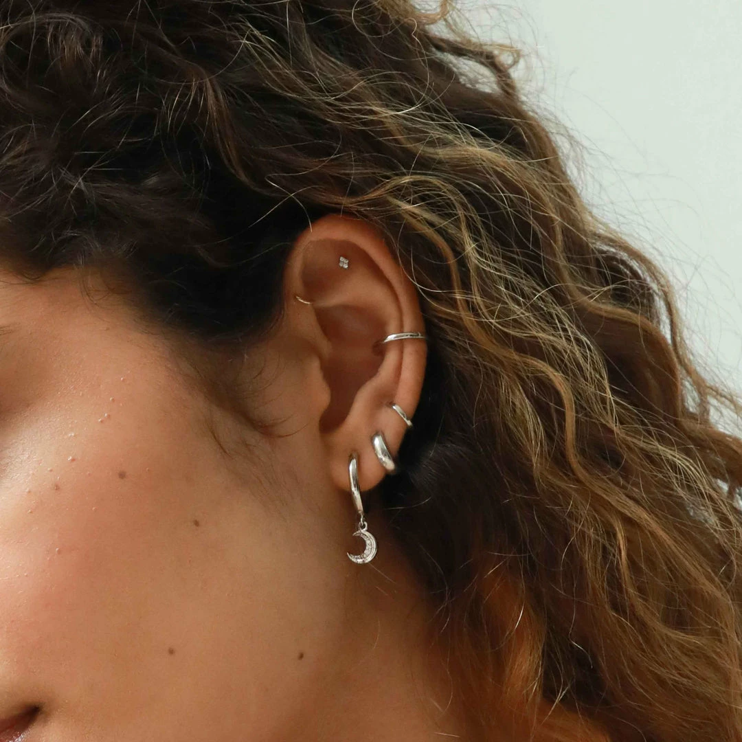 Sparkles aren’t just for nighttime, and neither are these hoops. The Crescent Moon Hoops in Silver feature a lunar motif to bring celestial vibes to your ear stack. The dainty cubic zirconias add just the right amount of sparkle for everyday. These can transition your look from day to night, simply add an ear cuff for a party-appropriate vibe.