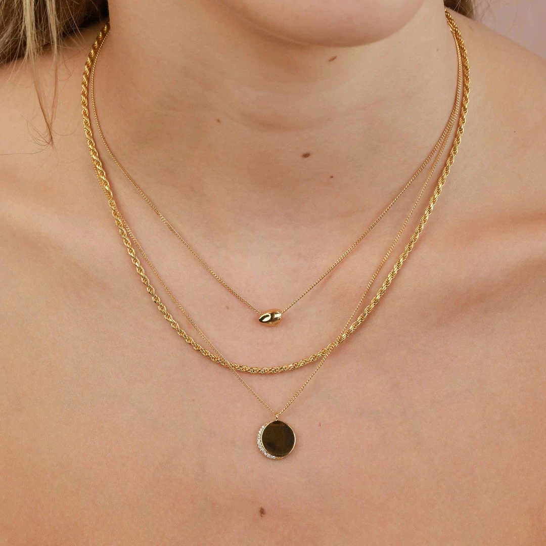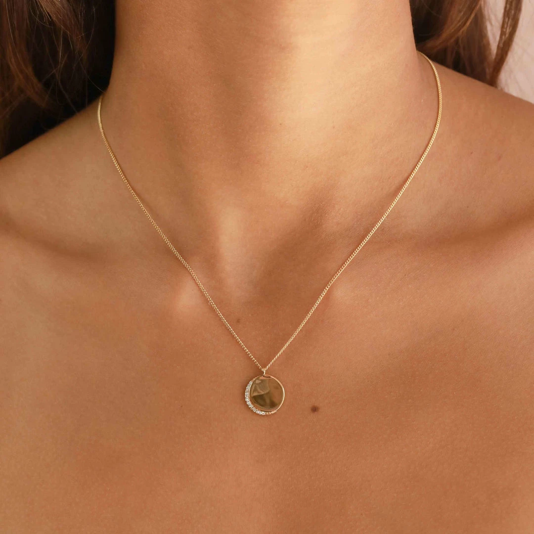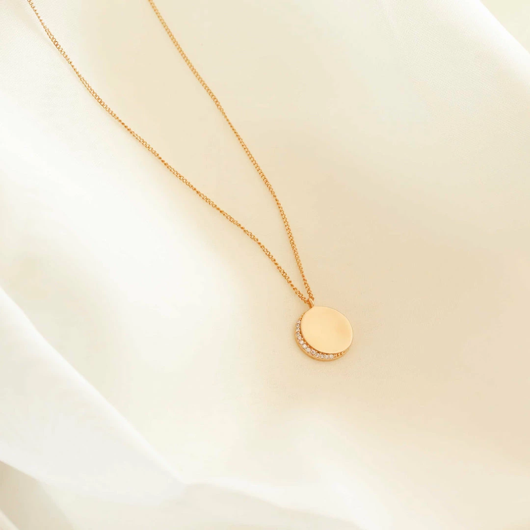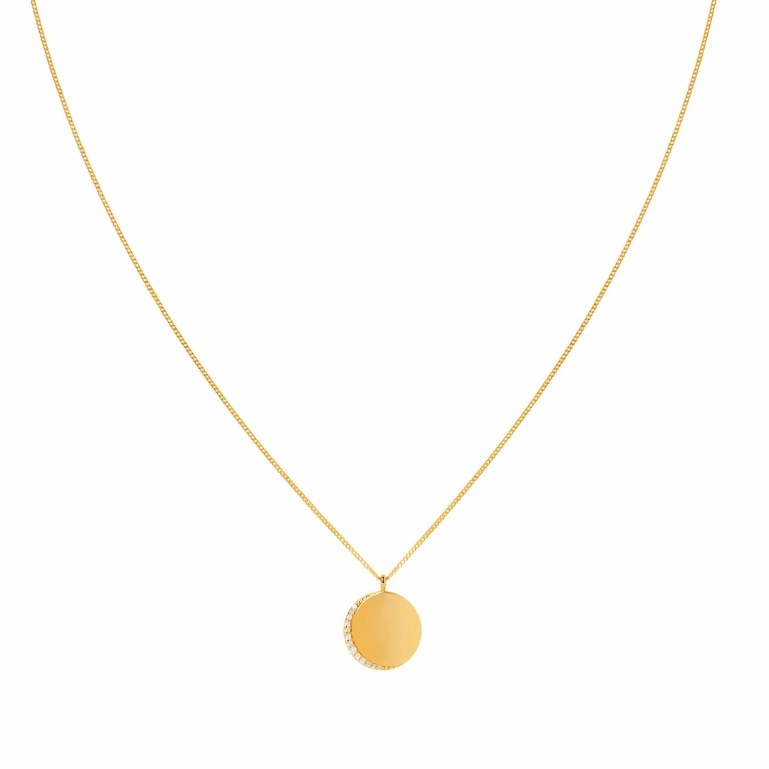 Get up close & personal with our Crystal Crescent Pendant Necklace in Gold ~ engrave it to make it truly yours. On a dainty chain, the pendant is in a classic design with a cubic-zirconia paved crescent to add sparkle to your neck stack. The design is timeless & chic so you can wear it all day, everyday. Either wear it on its own, or layer it with our chokers & chain necklaces.