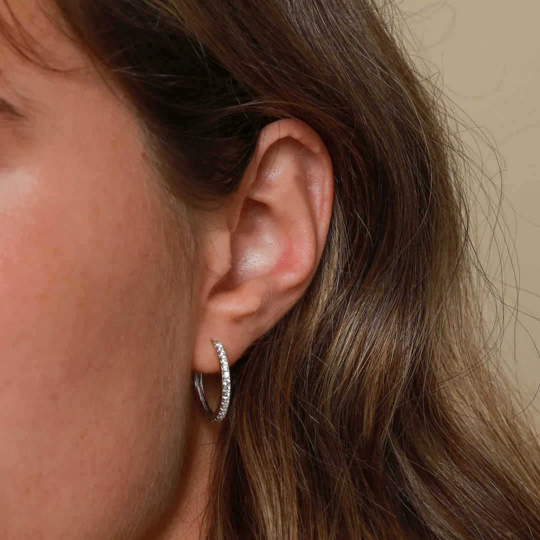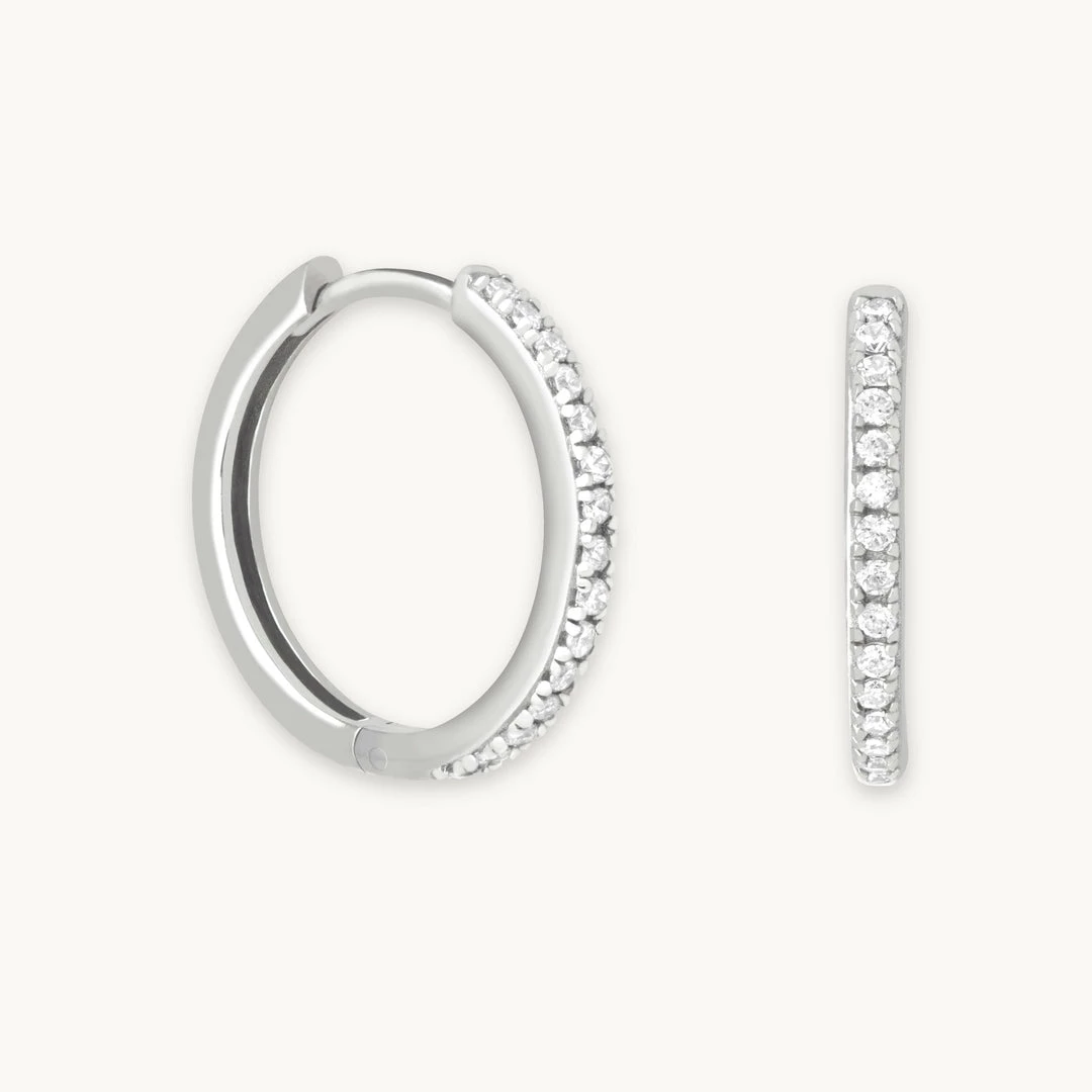 You can never have too many hoops. The Small Crystal Hinge Hoops in Silver are perfect for adding just the right amount of sparkle. If you liked the Crystal Hinge Large Hoops, these are perfect for adding a dainty accent to your stack. Wear them alone, or with huggies and ear cuffs for a curated look.