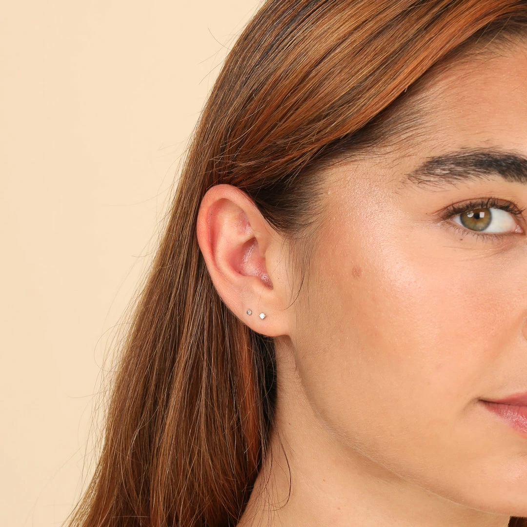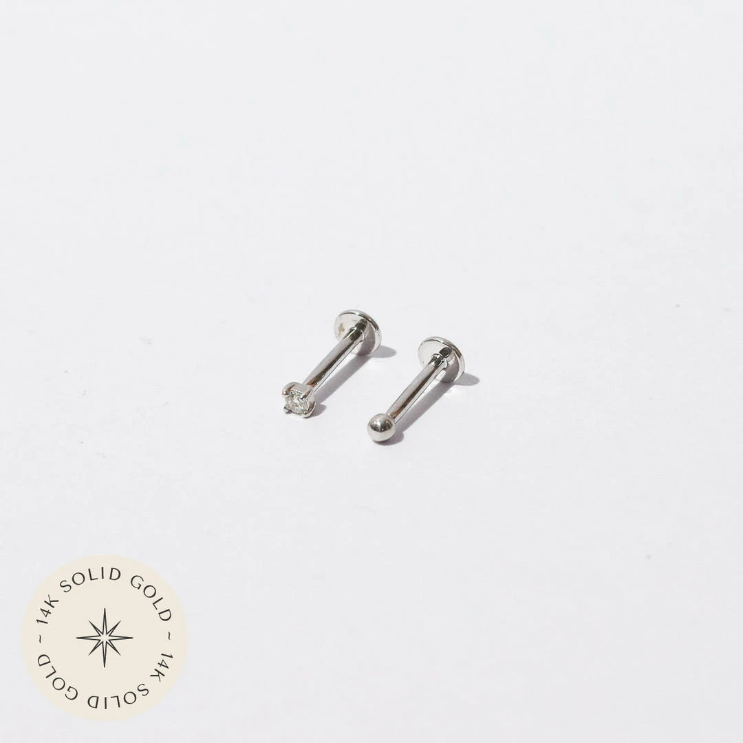 Did someone say diamond? The Diamond Piercing Stacking Set in Solid White Gold features a lab-grown diamond piercing stud and a beaded piercing stud for the perfect ear stack.