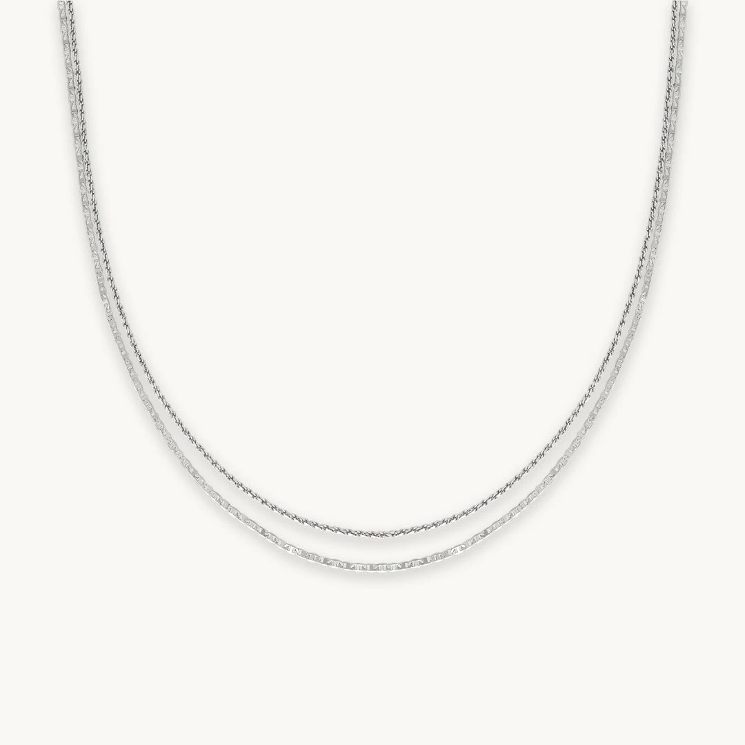 A dainty duo to wear everyday ~ the Duo Chain Necklace in Silver is a stacking necklace you’ll never want to take off. It’s got two chains in one, each delicate and textured, so you can achieve the layered look by this necklace alone. Wear on its own, or layer with your favourite pendant necklace.