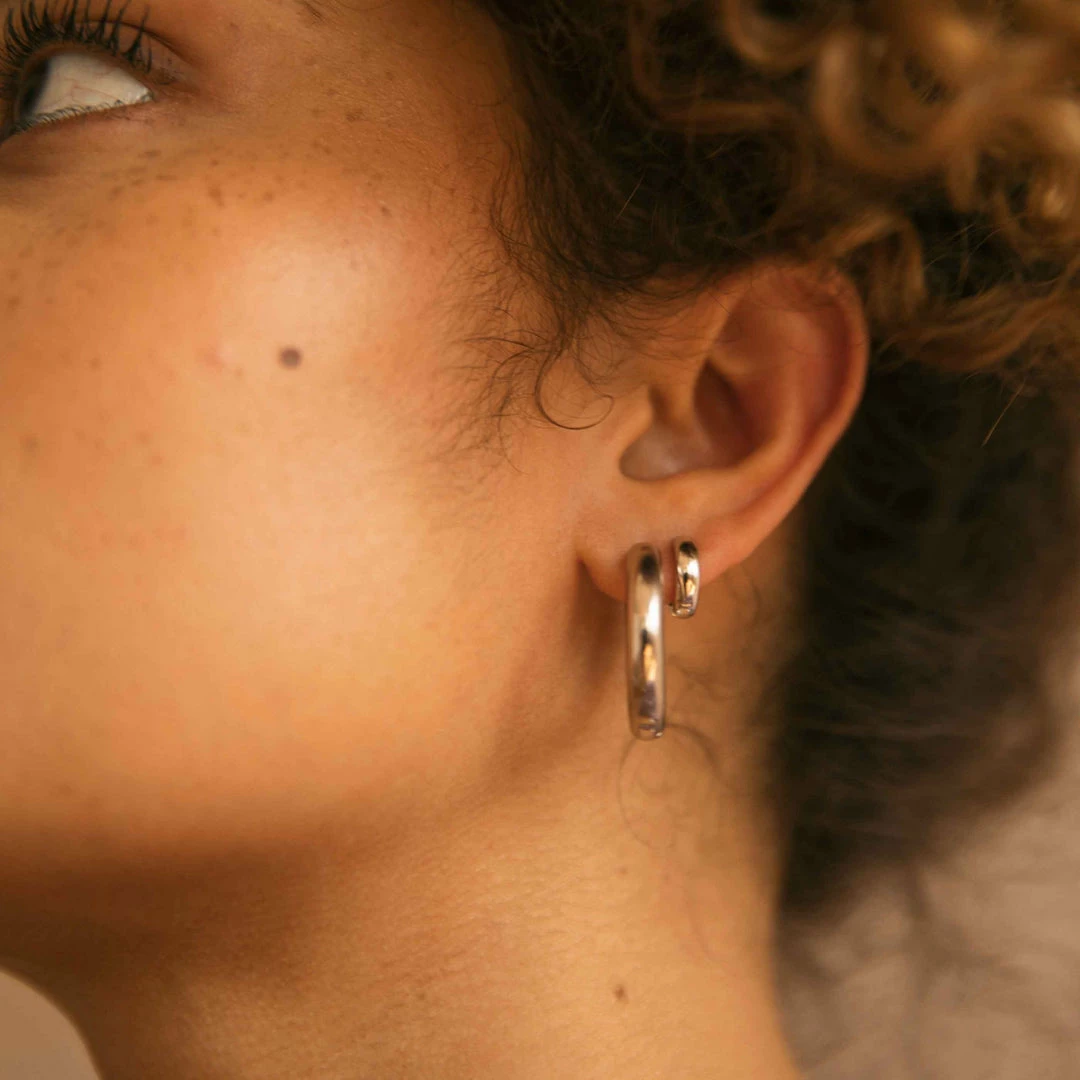 Small but statement, the Bold Huggies in Silver are a chunky upgrade to your everyday earrings. Wear on their own for a super chic vibe, or stack them up with daintier pieces for a curated look.Â