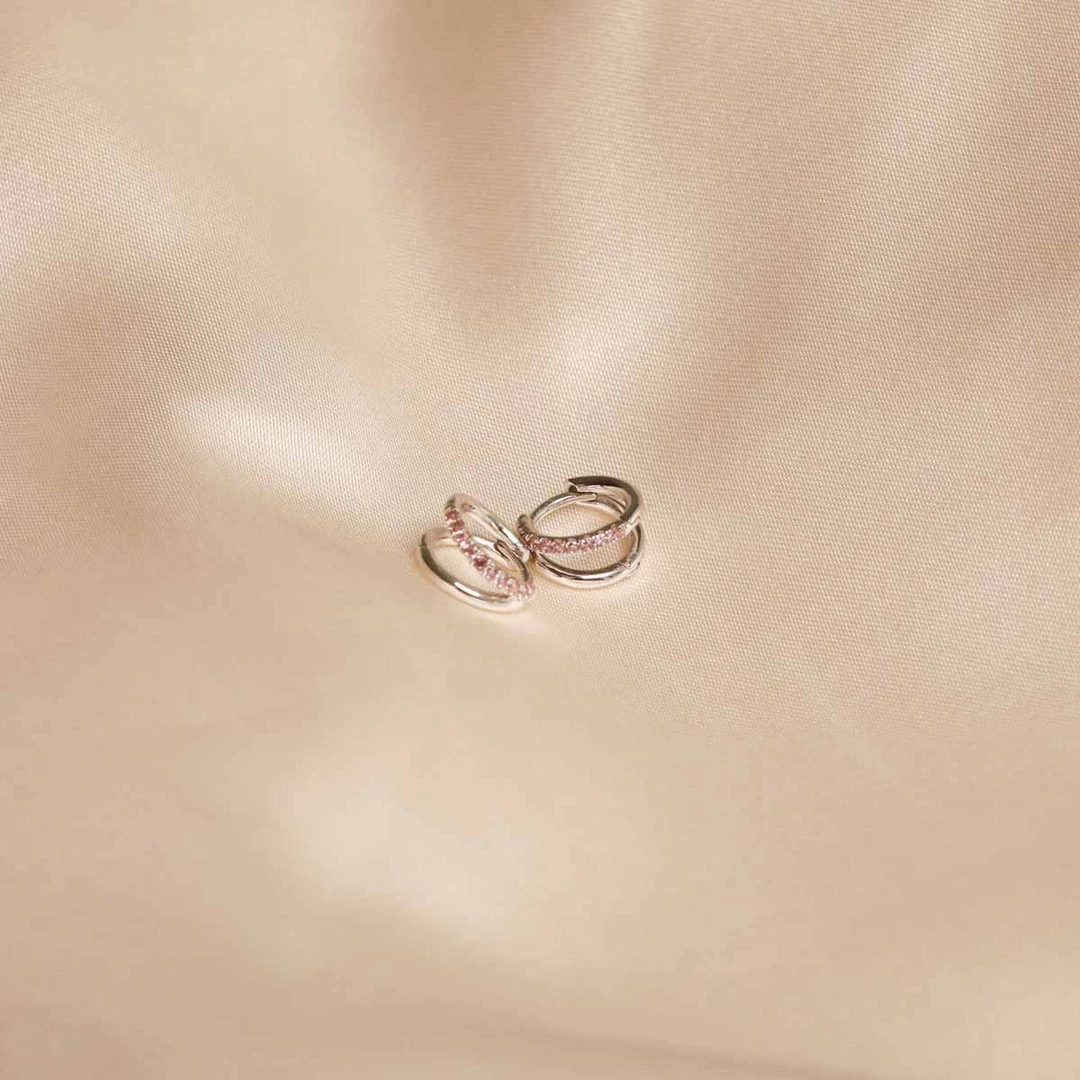 Your go-to huggies have had a fresh update ~ meet the Duo Pink Huggies in Silver. With the look of two hoops in one, these feature one plain and one crystal jewelled hoop with pink cubic zirconias. They’re the perfect way to achieve the stacked look with only one piercing. Our duo huggies are also available with emerald or aquamarine cubic zirconias!