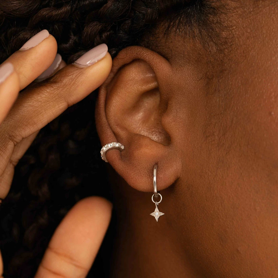 You + the Etched Star Hoops in Silver = a look written in the stars… Basic hoops, but with a little A&M touch – what’s not to like? Wear with your fave jewelled huggies for a sparkling stack.Â