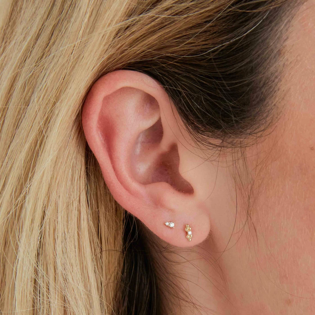 Add a luxe touch to your stack with the Solid Gold Stacked Crystal Piercing Stud ~ wear it in your lobe, tragus, conch or helix piercing. It’s made from 14ct recycled solid gold so you can keep it in your piercings year after year.