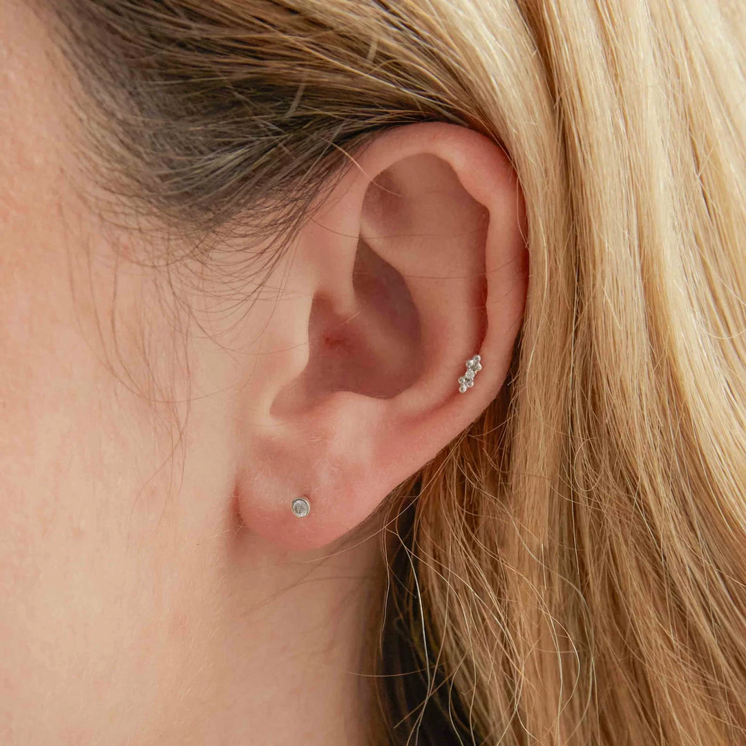 Statement sparkles for your piercings ~ the Solid White Gold Crystal Beaded Piercing Stud in Gold features a central crystal inlay with a beaded design above and below. It adds texture to your stack, and will fit perfectly in your lobe, tragus, conch or helix piercing.