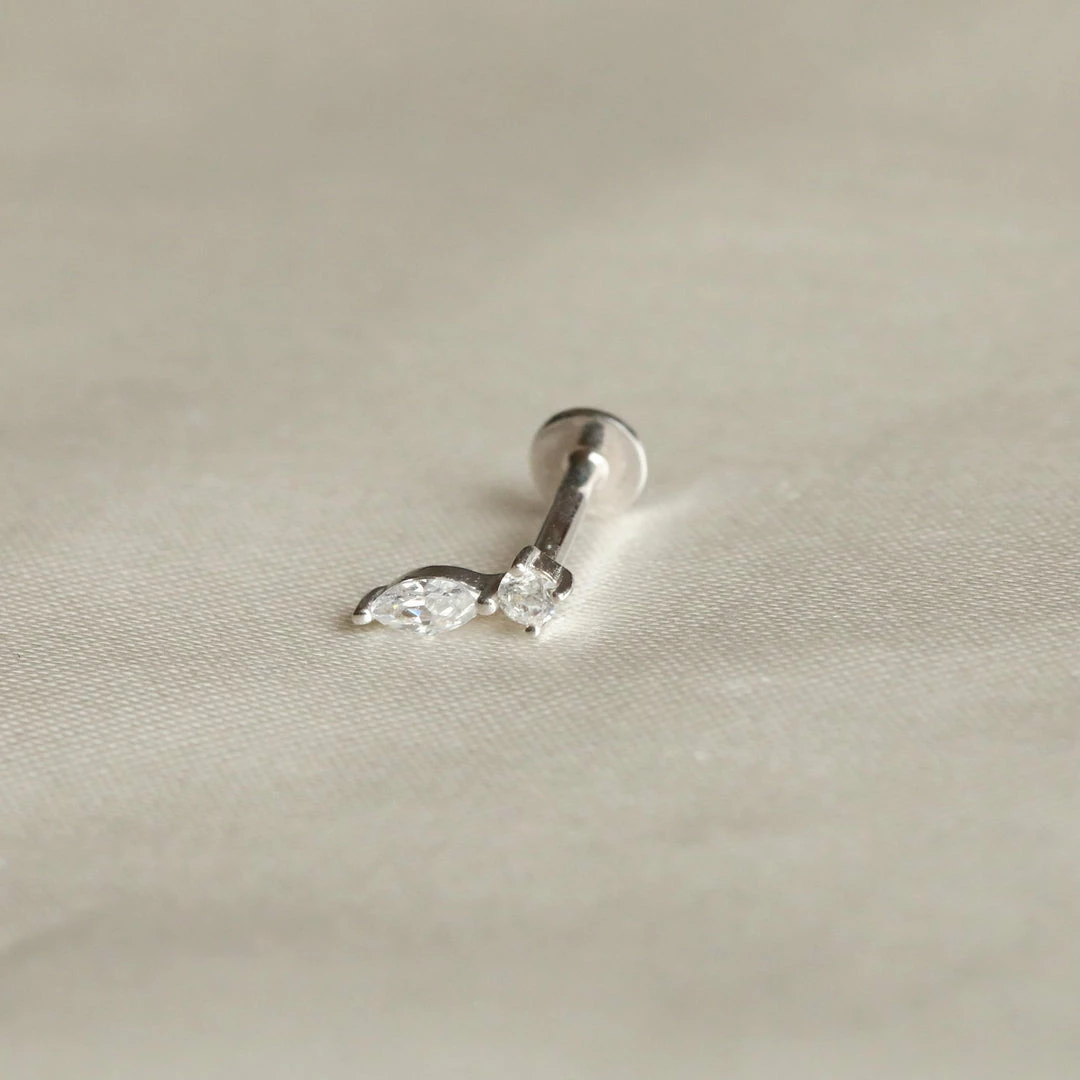 You’ve got the piercings, we’ve got the sparkle. The Solid White Gold Teardrop Piercing Stud features two crystals, one in a teardrop shape & one in a circular shape, to add a shining feature to your stack. Wear this in your lobe, conch or helix.