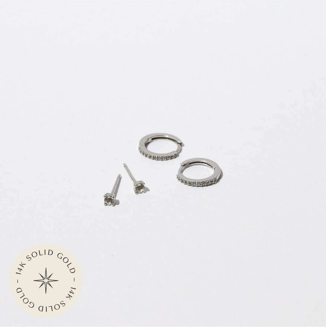 You deserve to shine, which is why we’ve curated the White Topaz Stacking Set in Solid White Gold – featuring sparkling hoops and dainty studs. White Topaz stones promote clarity of thought, which is why they’re known as the stone of manifestation. Curated by our in-house stylists, or Solid White Gold Stacking Sets are the perfect way to celebrate a special moment or occasion, or to keep for yourself to wear every day.