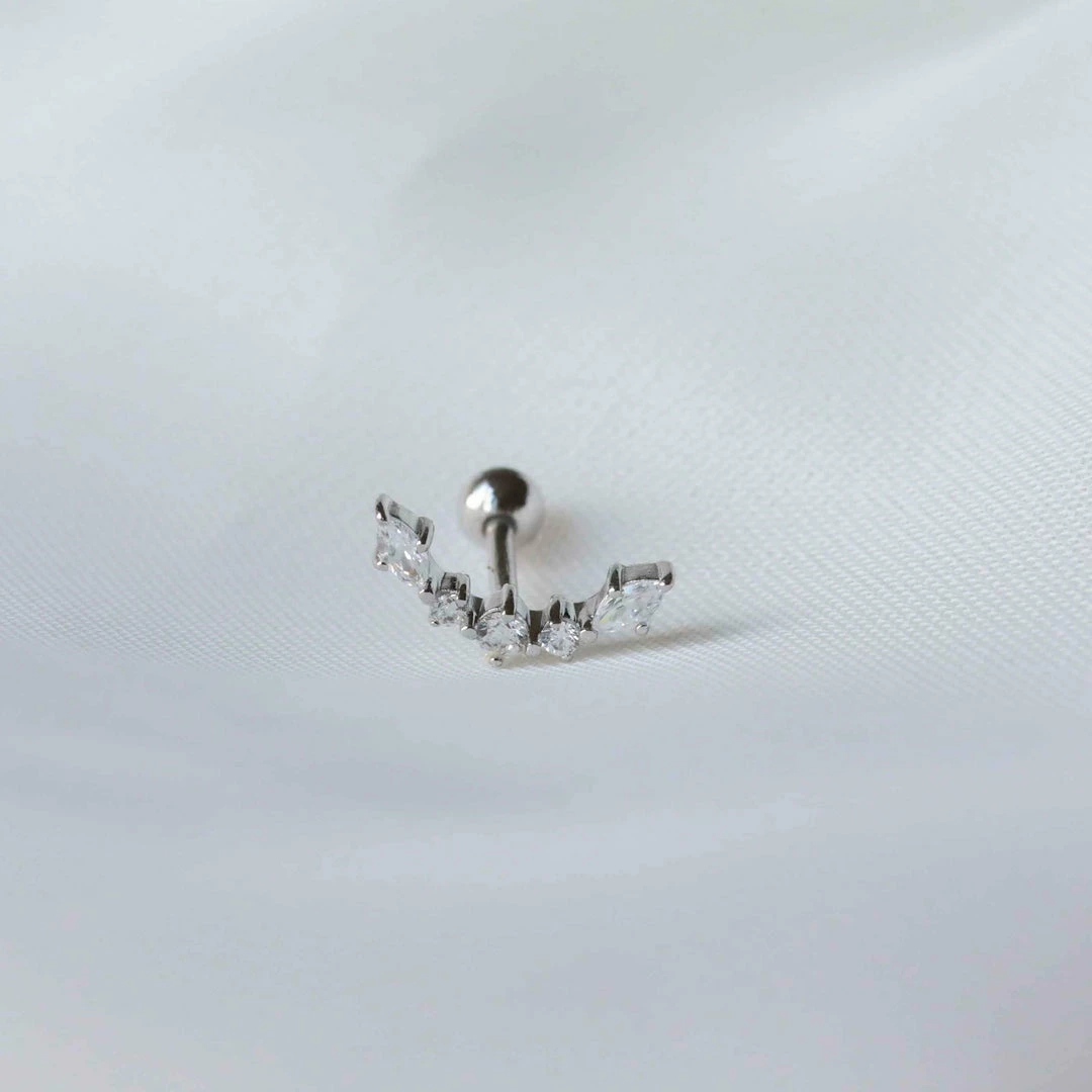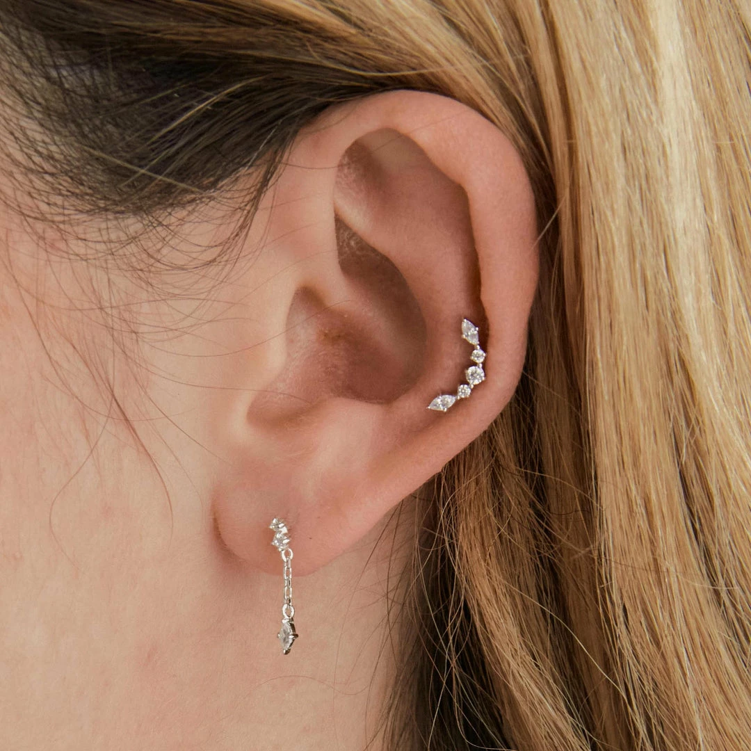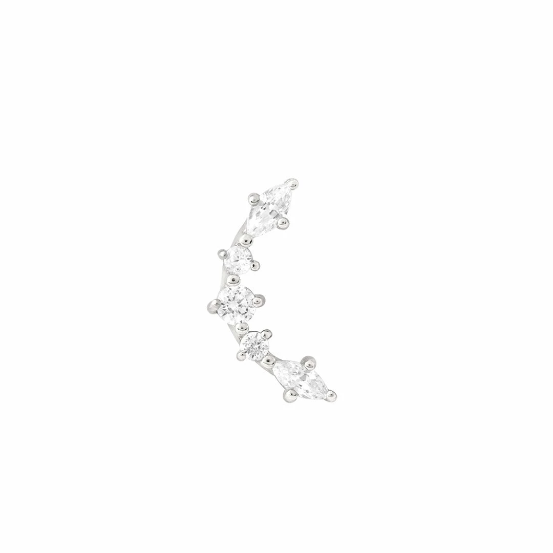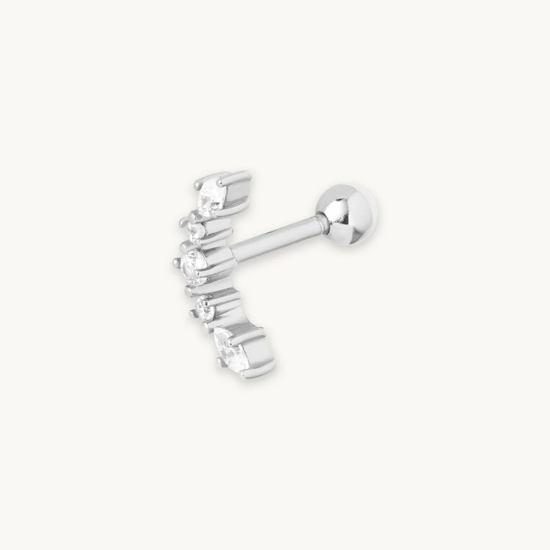 It’s (ear) party season. The Elysian Curved Barbell in Silver features sparkling cubic zirconias to give your piercings the attention they deserve. The curved shape is designed to follow the natural curves of your ear, resulting in the perfect fit. You can wear this in pretty much any piercing, and it looks great stacked up with ear cuffs & huggies for a more curated vibe.