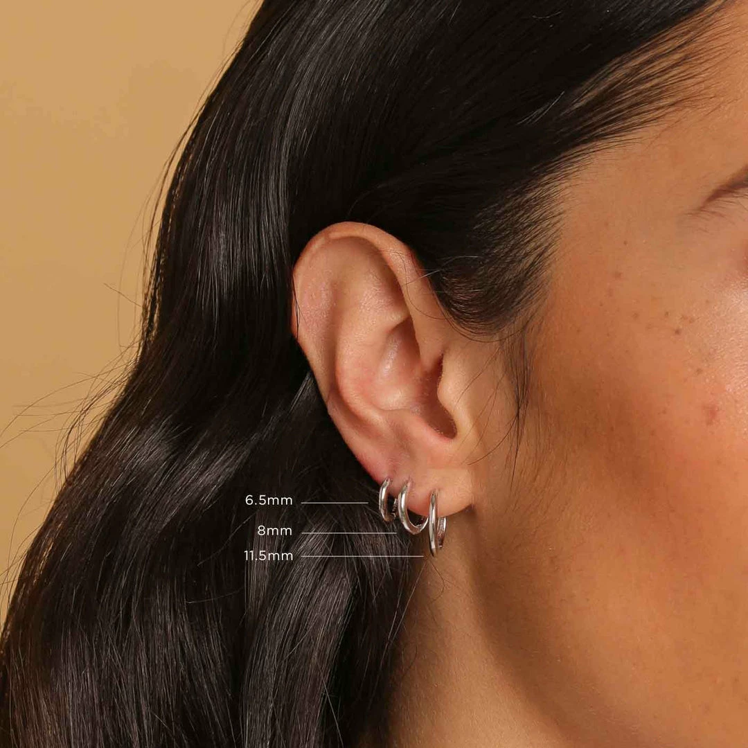 An elevated essential for every day. The Essential 8mm Hoop is a chic way of upgrading your piercing jewellery, fitting seamlessly into any ear stack. Fitting in lobe, forward helix & helix piercings, this single hoop means you can customise your stack and achieve the asymmetrical look.