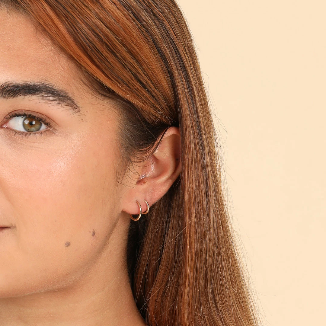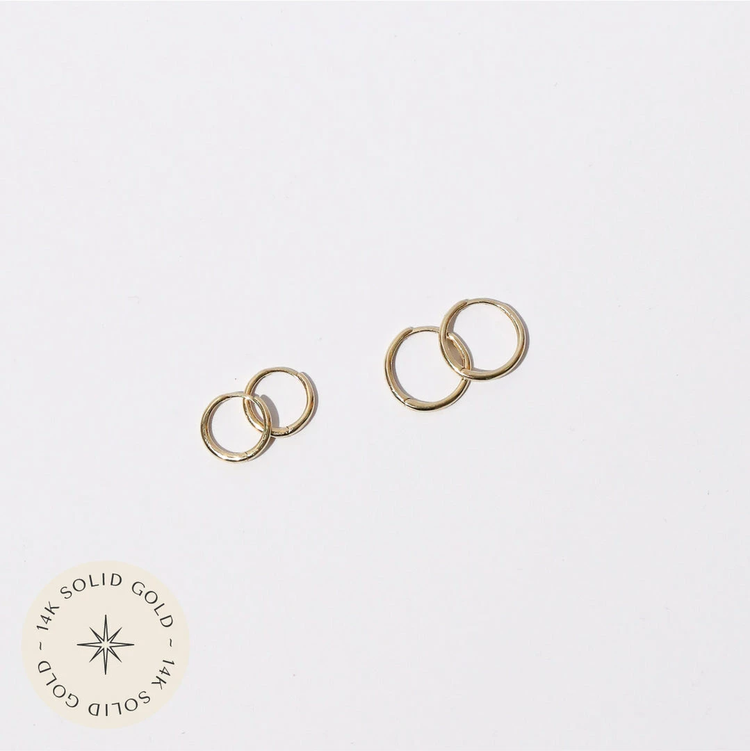 Elevated essentials for every day. The Essential Hoop Stacking Set in Solid Gold includes 2 pairs of our best-selling hoops in different sizes so you can achieve the perfect ear stack.
