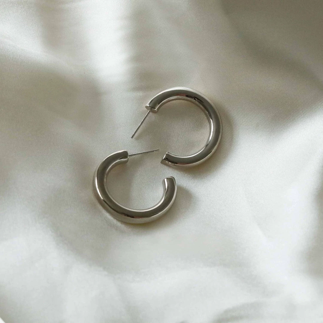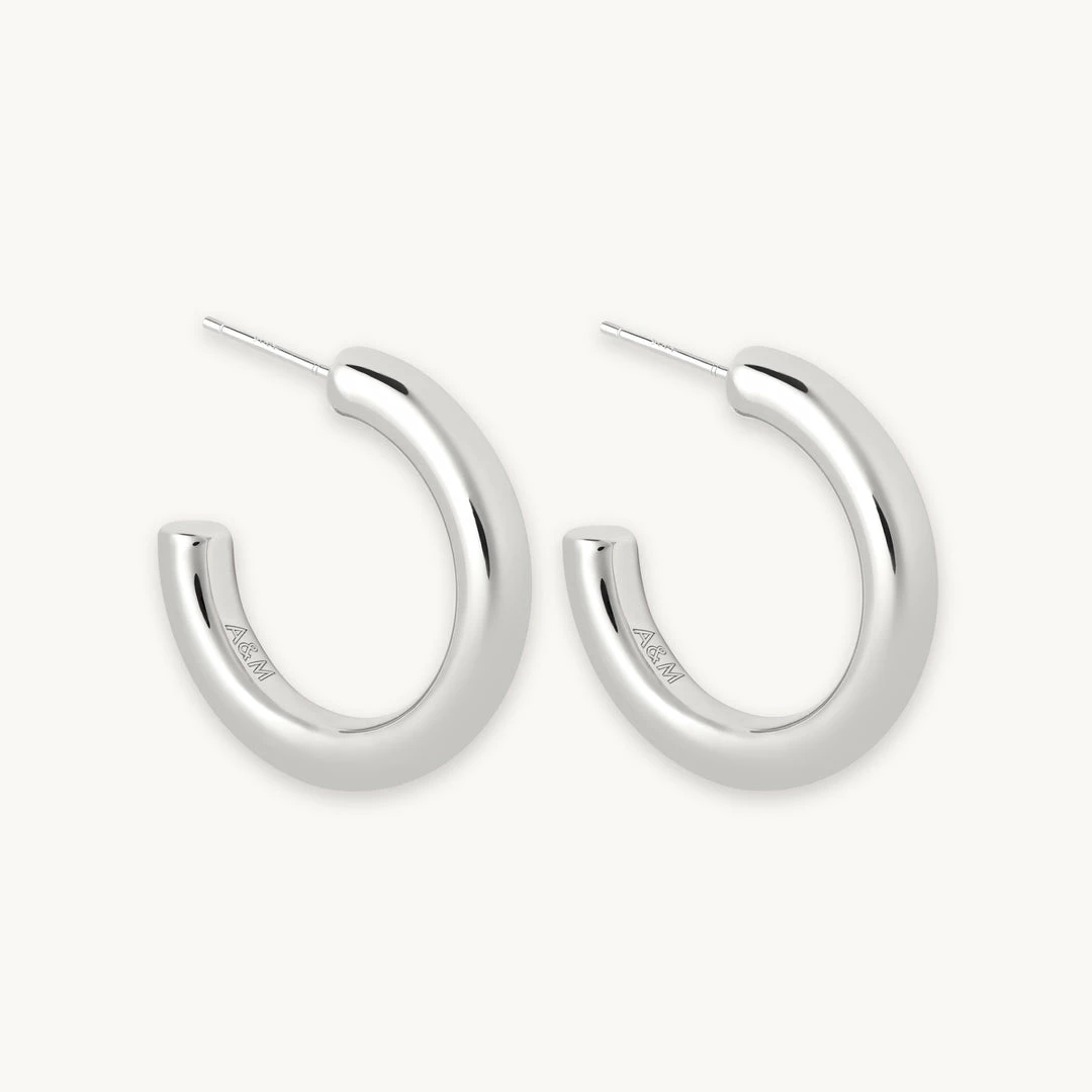 The essentials you won’t be able to live without ~ the Essential Medium Hoops in Silver, your new everyday go-to. They’re in a chunky design for a statement look, but are lightweight so you can wear in your lobes all day. The medium size is perfect whatever the occasion, but check out our Large size for a night-out look, or the Small size for an everyday vibe.