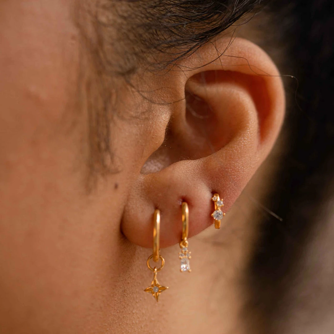 You + the Etched Star Hoops in Gold = a look written in the stars… Basic hoops, but with a little A&M touch – what’s not to like? Wear with your fave jewelled huggies for a sparkling stack.Â