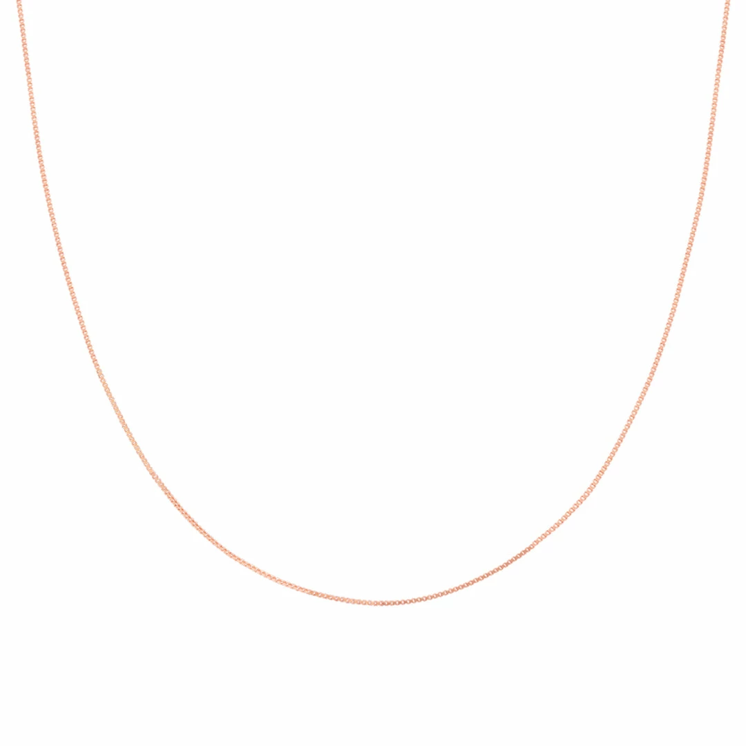 The Fine Box Chain in Rose Gold is an elevated classic. Think minimal effort but maximum impact. Team it with any of our necklace charms for a look that matches your style.