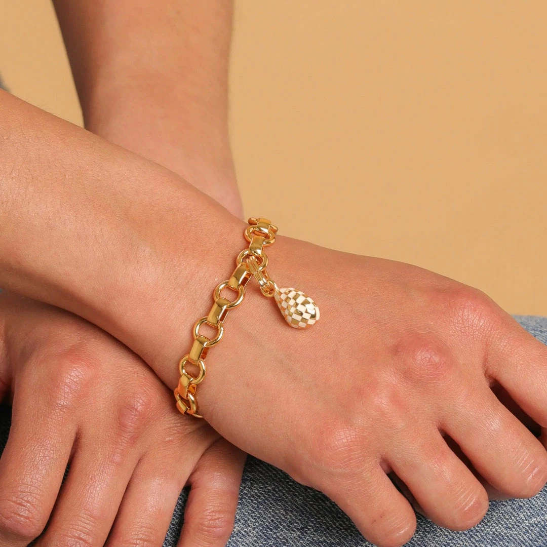 The only bracelet you need this season. The Fused Chain Bracelet in Gold is in a bold linked design to add a statement vibe to your wrist stack. You can wear it alone or stack with other styles for a curated vibe.Â
