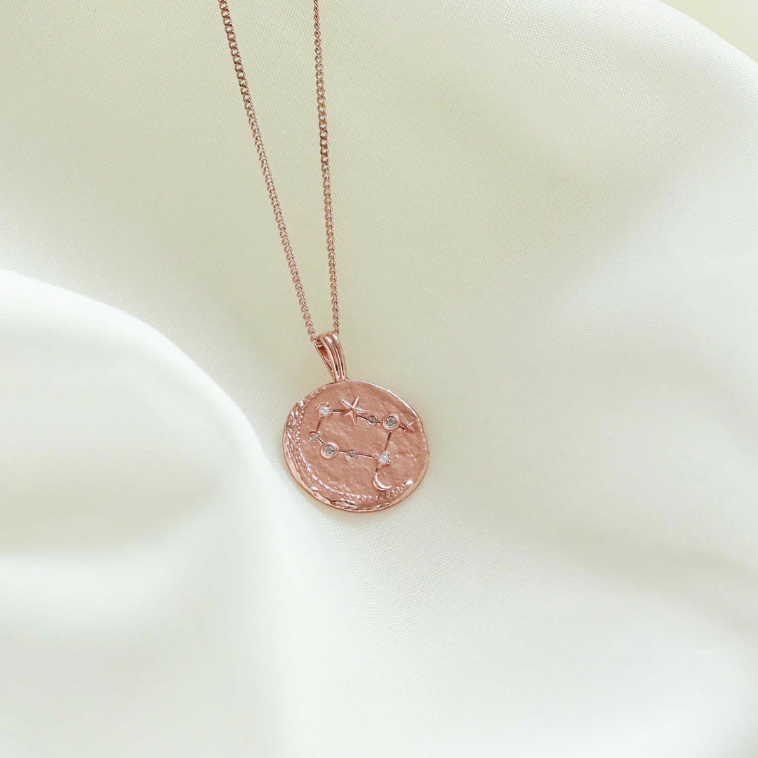 The Zodiac Gemini Pendant Necklace in Rose Gold features sparkling cubic zirconias to symbolise the Air element. Geminis are honest, kind and smart. Remind the Gemini in your life all the reasons why they’re special with this necklace.