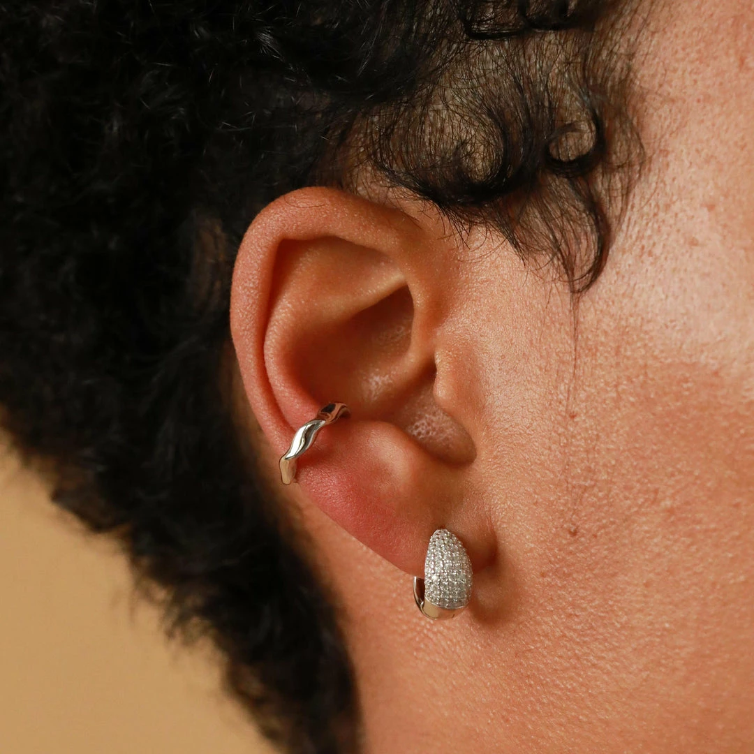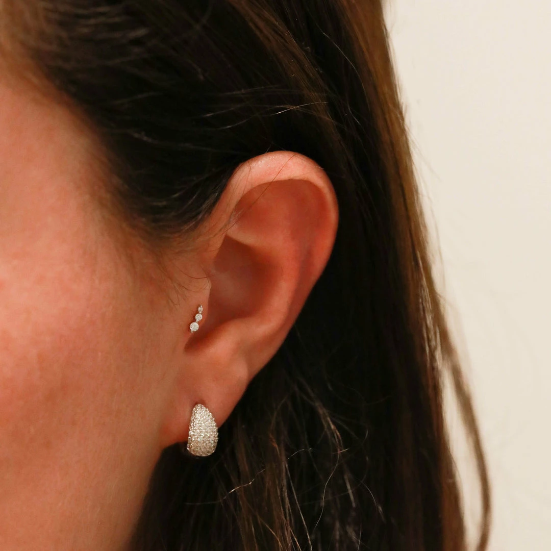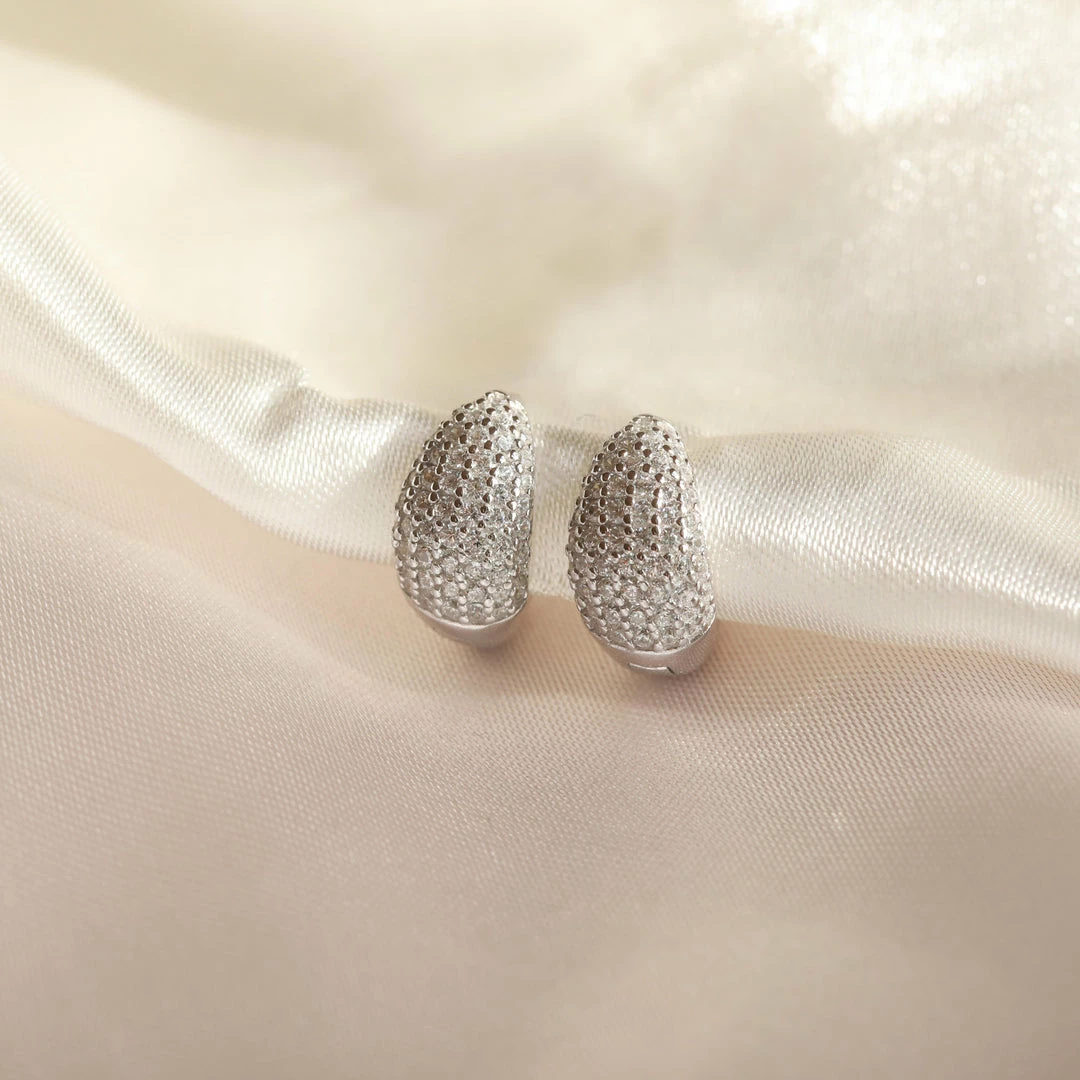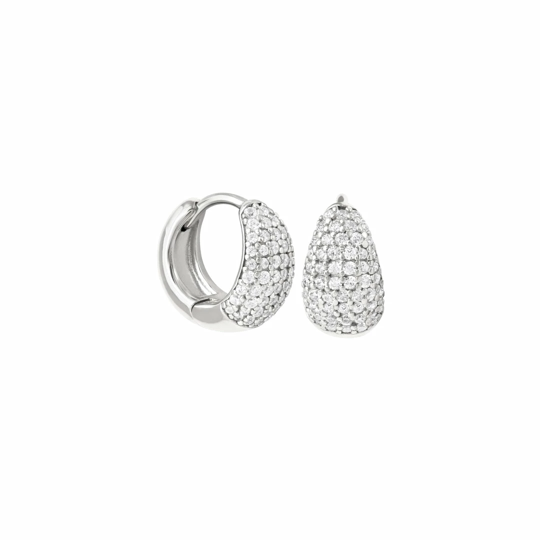 The sparkles you deserve ~ the Glimmer Bold Pave Huggies in Silver are the ultimate party piece. With a graduated shape and a chunky design, these huggies are paved in shining cubic zirconias for a statement finish. They’re enough of a statement to wear in their own, or you can stack them up with other huggies & studs for a more curated look.