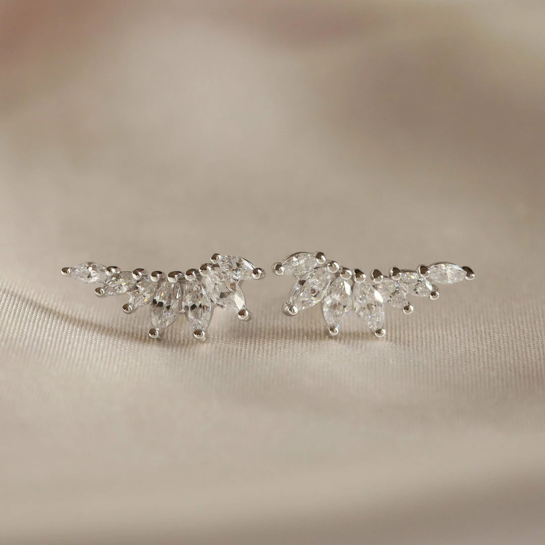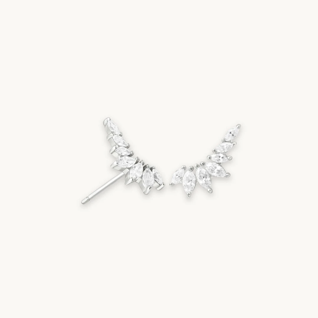 Turns out that all that glitters really is gold ~ the Glimmer Navette Stud Earrings in Silver has a trail of sparkling cubic zirconias for a statement look. Wear these in your lobe for the ultimate party look, either in your first lobe or in your upper lobe with a pair of chunky hoops.
