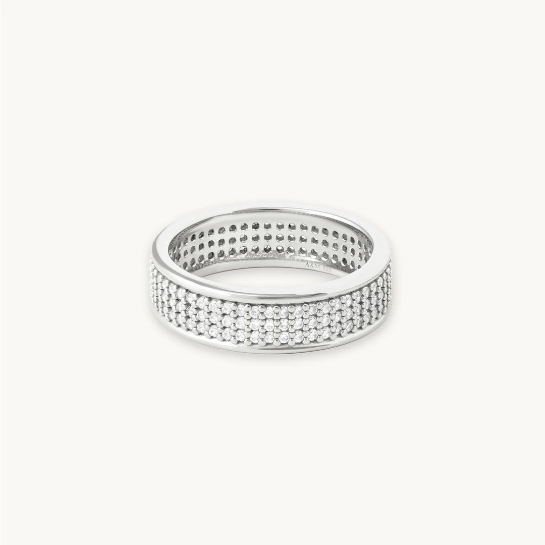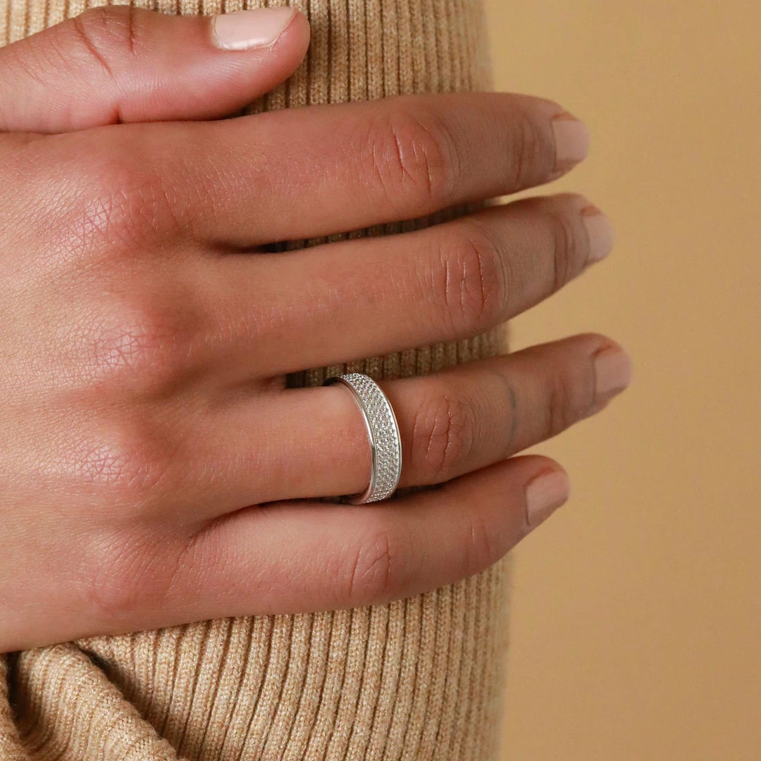 Because everyone loves a touch of opulence. The Glimmer Pave Stacking Ring in Silver features sparkling cubic zirconias for a statement. It’s the perfect way to add a luxe vibe to your look to take you from day to night. Wear it alone, or stack with our other band rings.