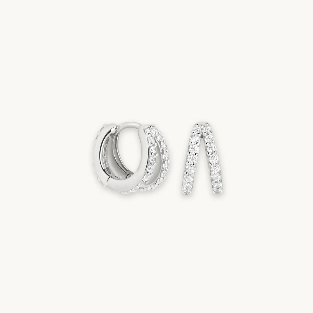 And it was all an illusion… the Illusion Crystal Huggies in Silver have a the look of two earrings, but only need one piercing. They’re paved in cubic zirconias for a sparkling finish, adding a stacked-up, statement vibe to any ear stack. Wear alone in your first lobe, or stack them up with ear cuffs for a fully curated ear (minus any new piercings).