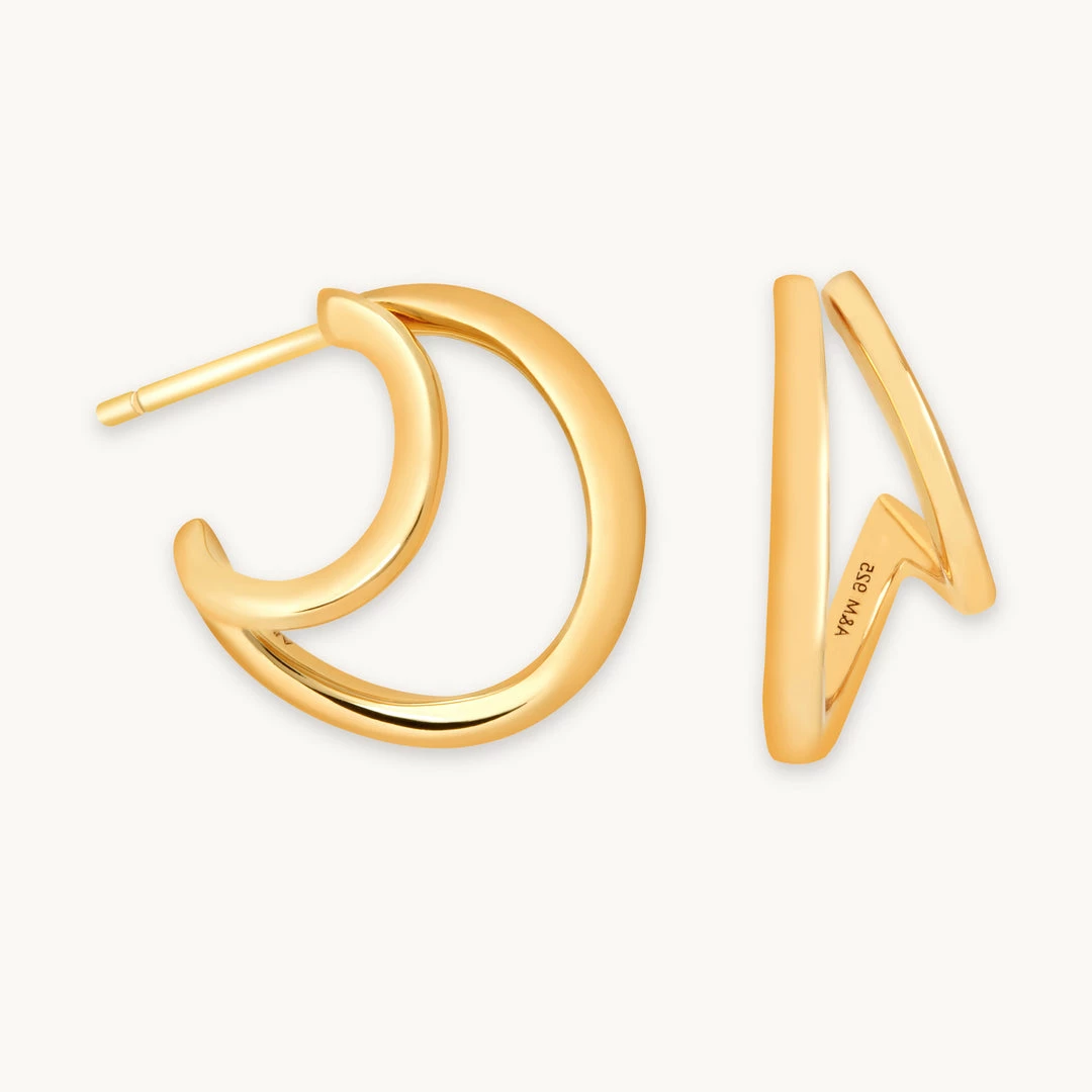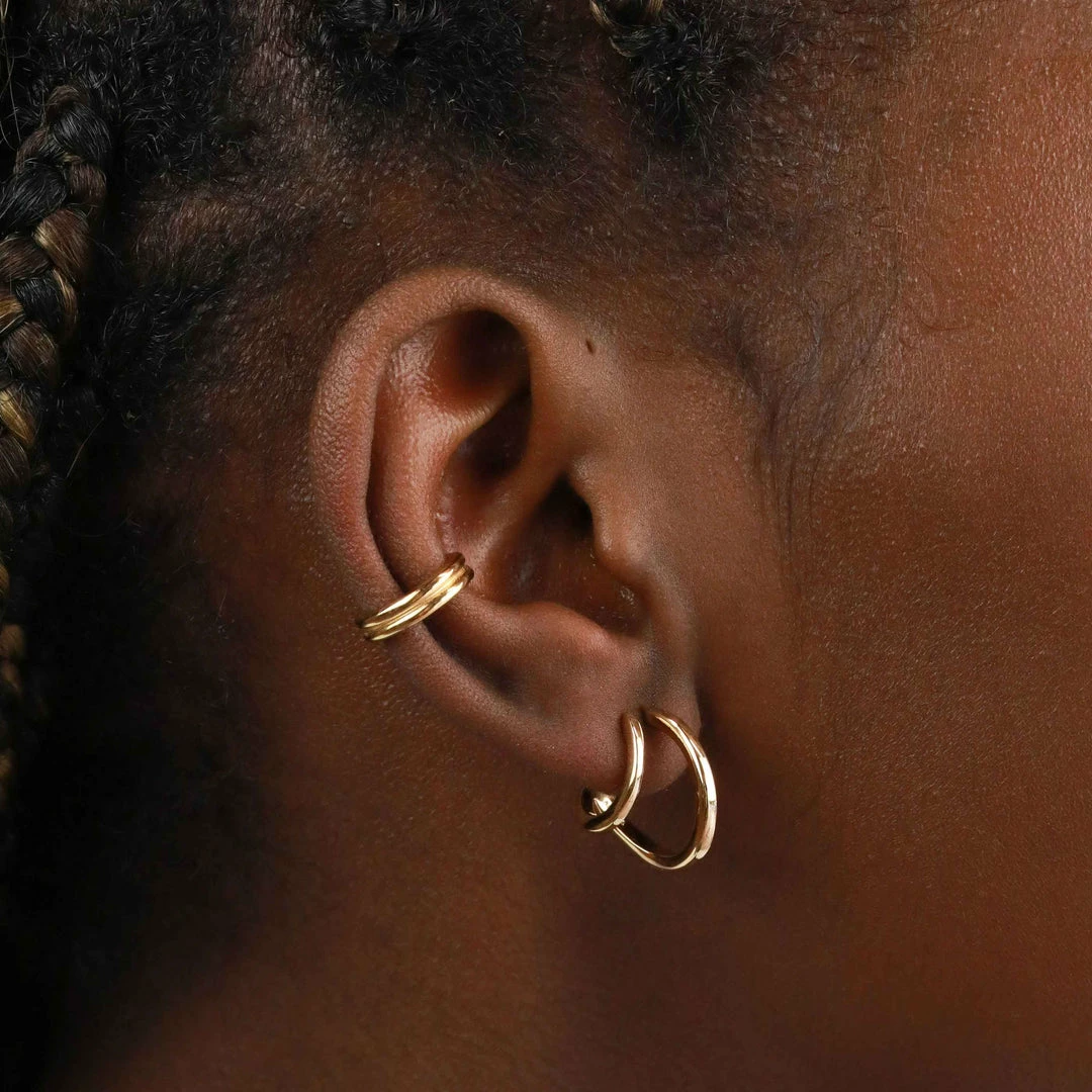Two hoops in one? Yes please. Our Illusion Hoops in Gold are like our best-selling Illusion Crystal Hoops, but in a more minimalist design. With the illusion of a double lobe piercing, these hoops only need one – meaning you can achieve the stacked look without getting a piercing.Â