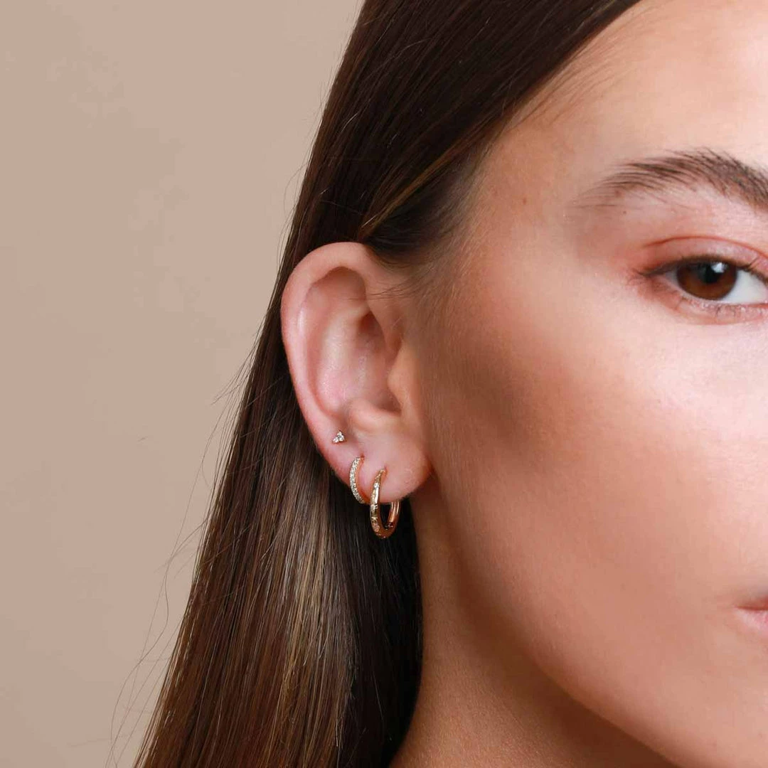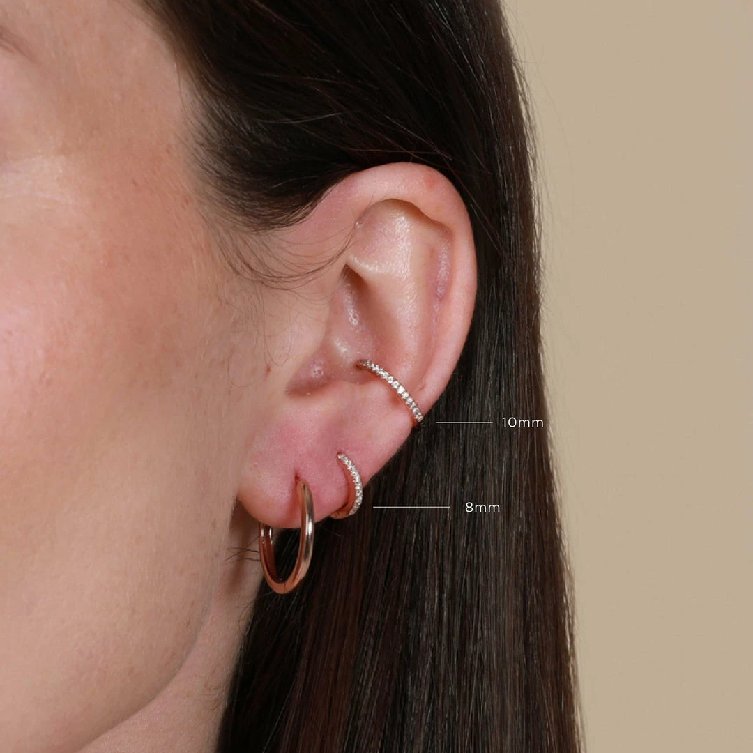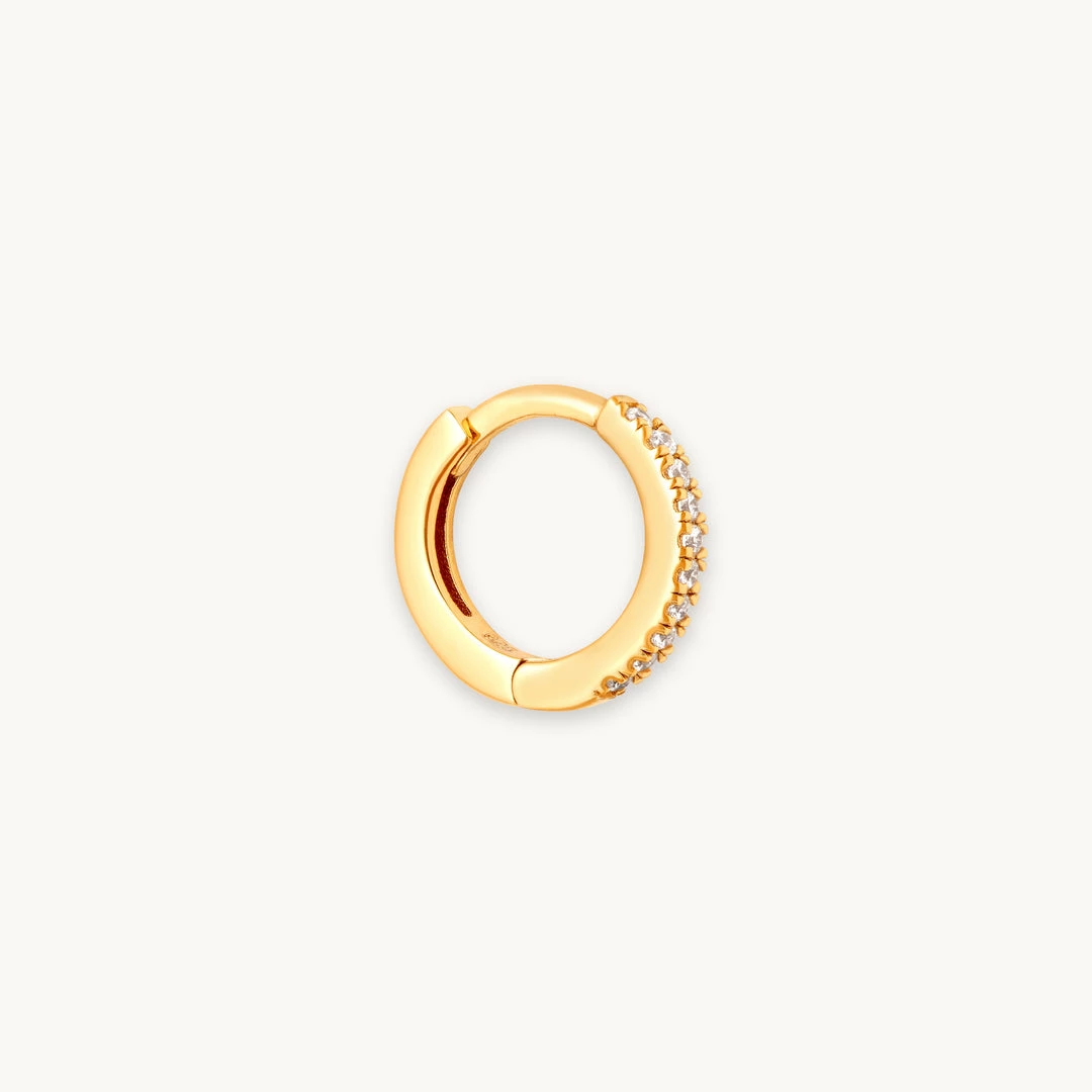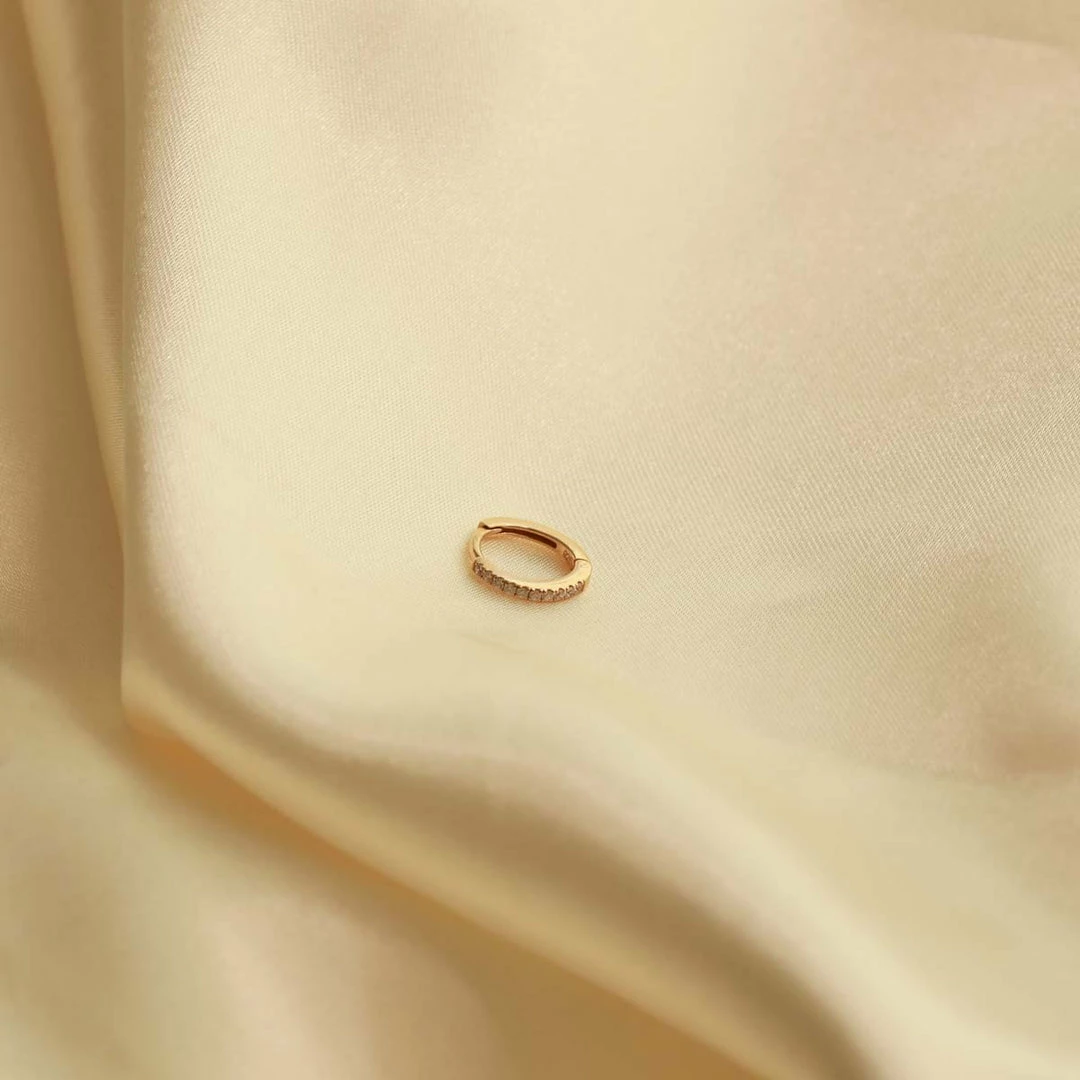 A sparkling addition to your stack ~ the Jewelled Hoop 8mm in Gold is the perfect way to give your piercings the sparkle they deserve. Fitting in lobe, forward helix & helix piercings, this individual hoop means you can customise your stack and achieve the asymmetrical look.