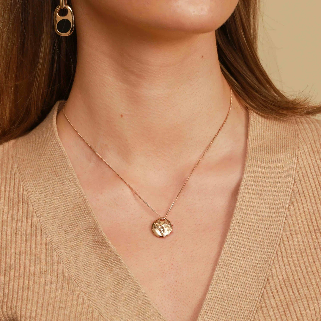 Jewellery to make you feel like you. The Molten Coin Pendant Necklace is a classic pendant, elevated with an A&M twist. It has a molten texture over the coin for a luxe vibe. Classic enough to wear everyday, this necklace also layers perfectly with chain necklaces ~ so you can achieve the layered necklace look.