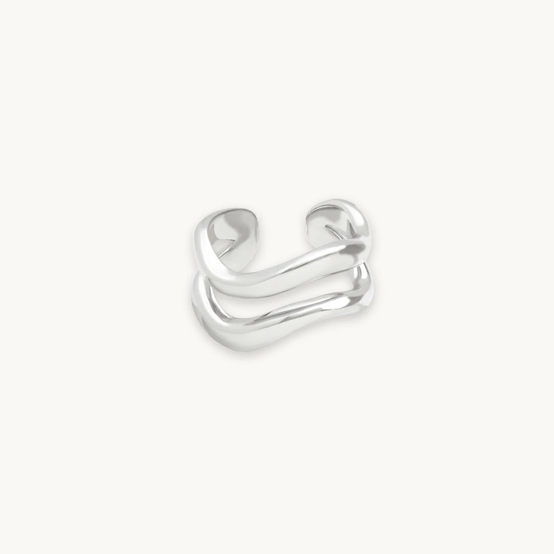 Flowing textures to add a luxe touch to your stack ~ the Molten Duo Ear Cuff in Silver is the statement piece your collection needs. With the look of two cuffs in one, this features two molten bars to add a stacked look. Wear it with the Molten Duo Large Hoops for the ultimate Embrace Collection statement.