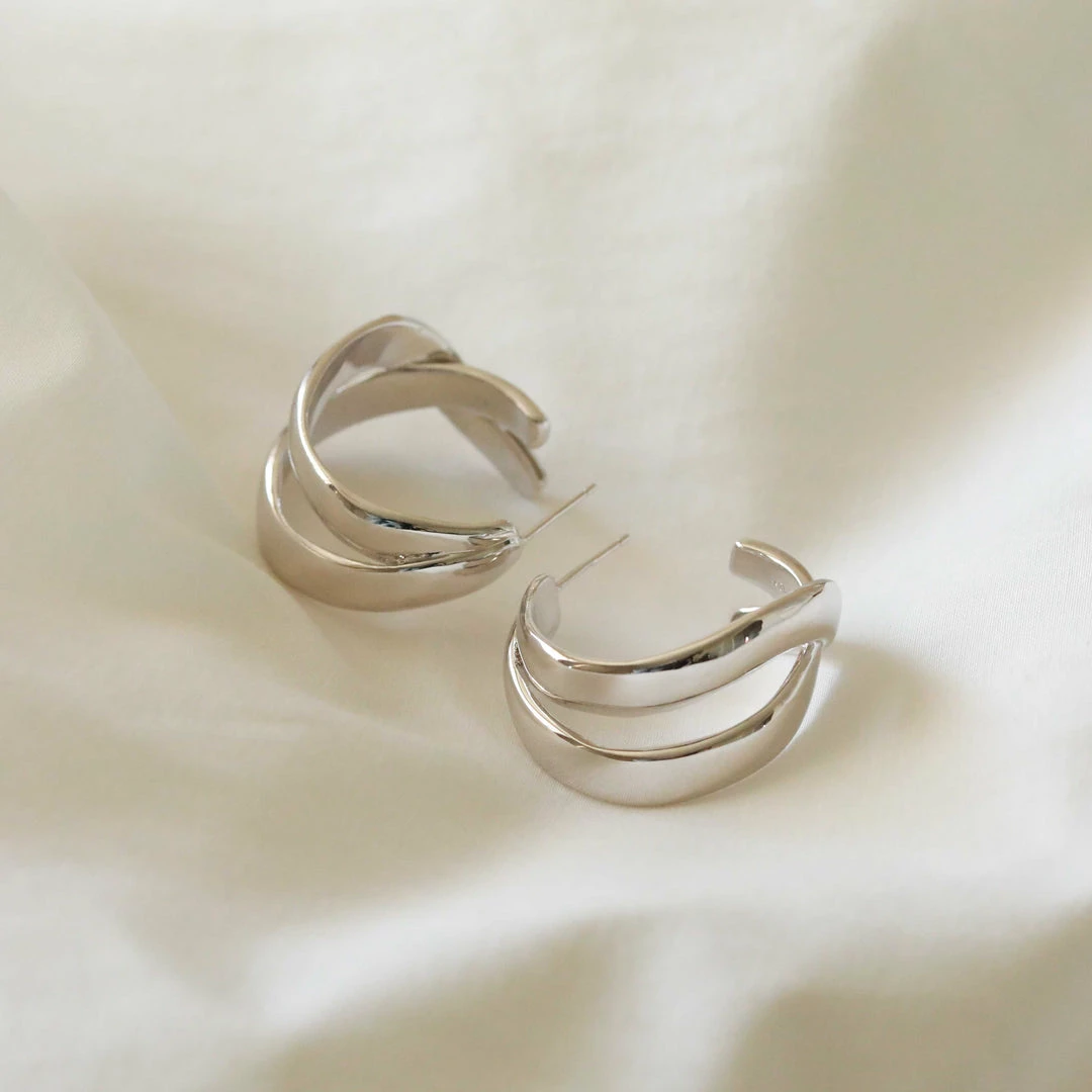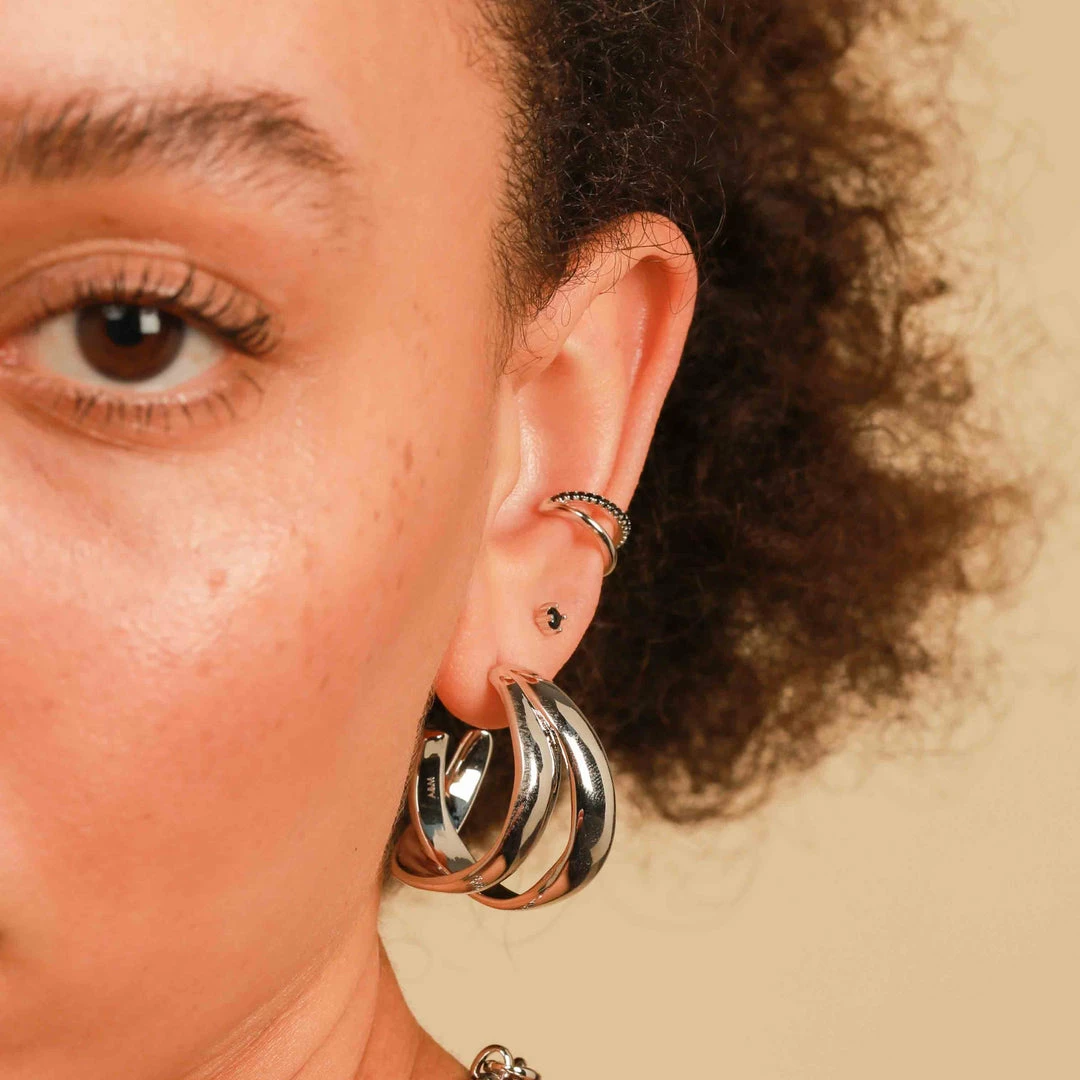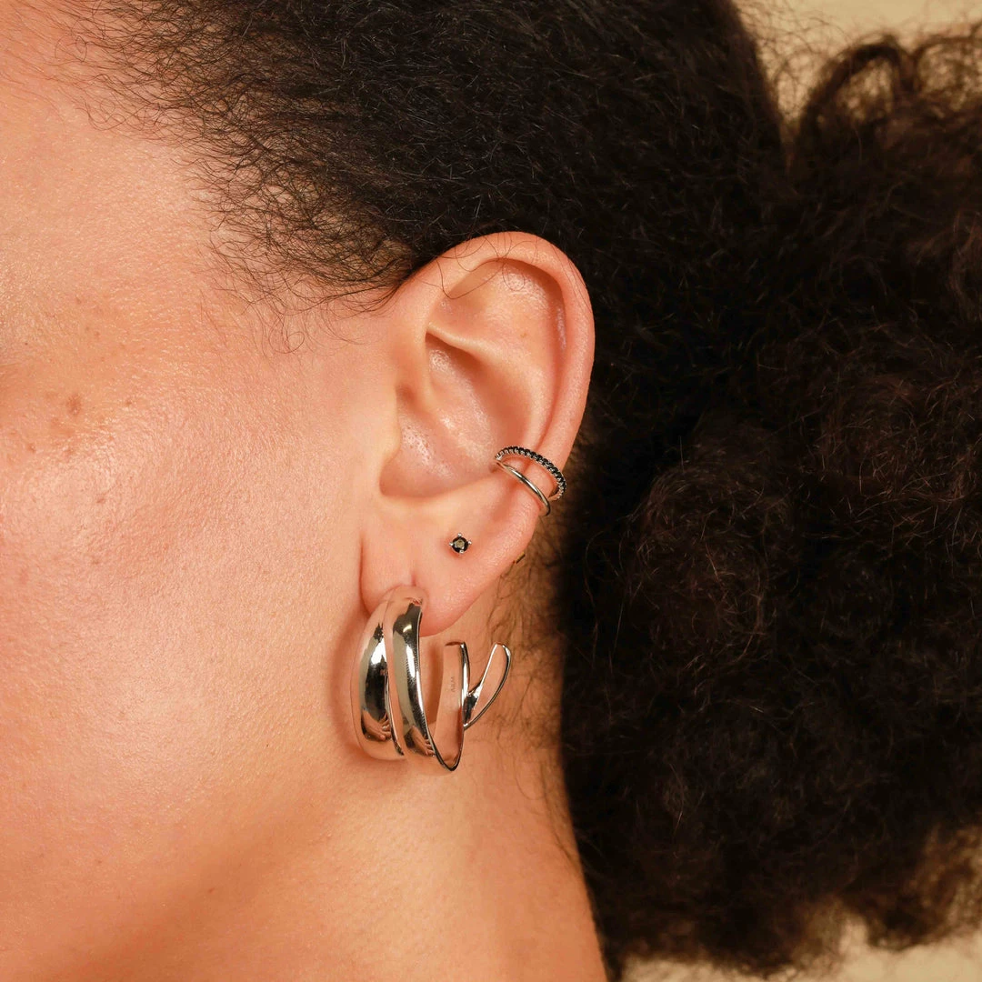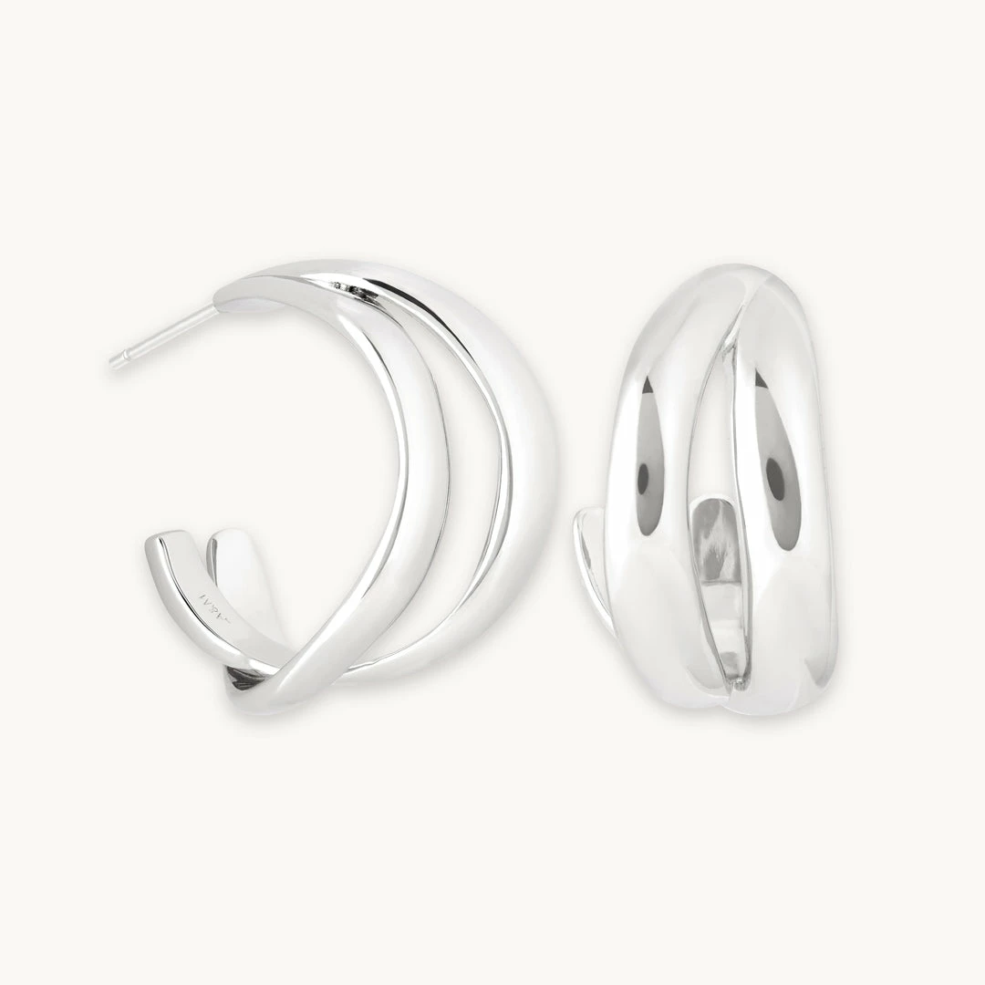 Everything is better with a pair of hoops, and even better when they’re the Molten Duo Large Hoops in Silver. They’re the statement hoops your collection has been waiting for (and more). With the appearance of two hoops crossed over, these are an easy way to achieve the stacked up look. Wear them alone, or with ear cuffs & huggies.