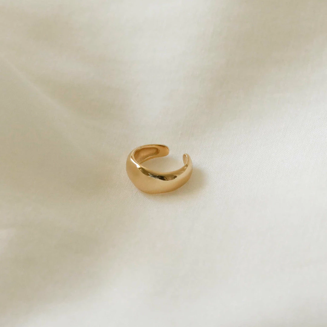 The Molten Ear Cuff in Gold will elevate any ear stack, no matter the occasion. It’s in a chunky profile with a high-shine molten finish, resulting in a statement look. Wear it with huggies & studs for an everyday vibe, or your favourite pair of hoops for a going-out look.