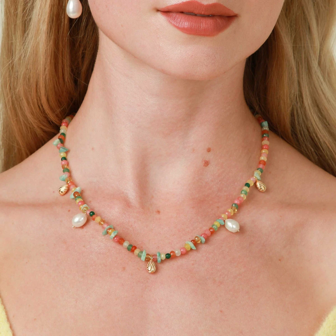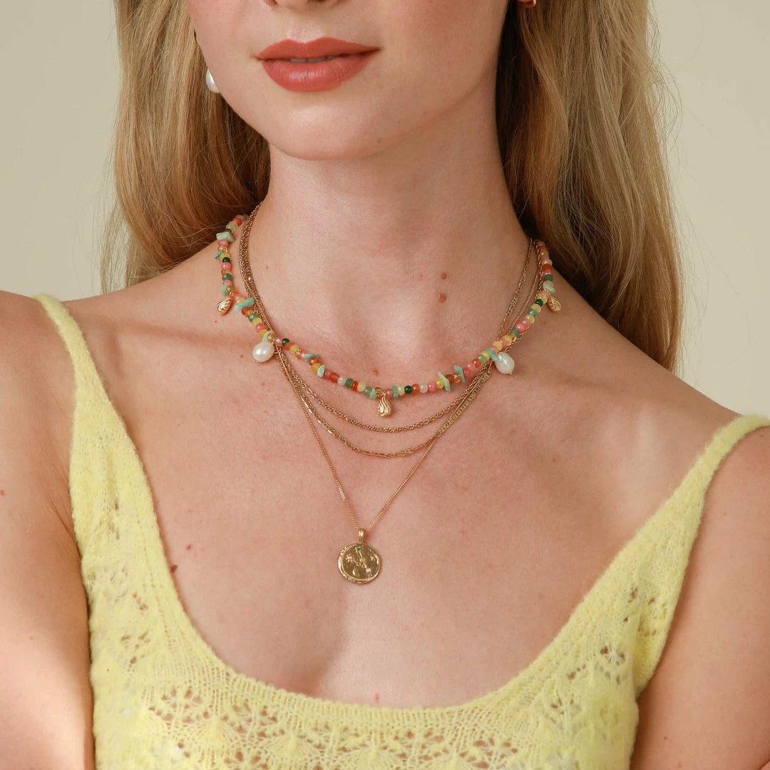 Re-energise your stack with colour, semi-precious stones and playful jewellery pieces. The Flow Beaded Necklace in Gold features colourful semi-precious stones and freshwater pearl charms to bring a summery vibe. Wear this on your sunny getaways, garden parties or staycations – no matter what you’re doing this summer, this necklace is all you need.