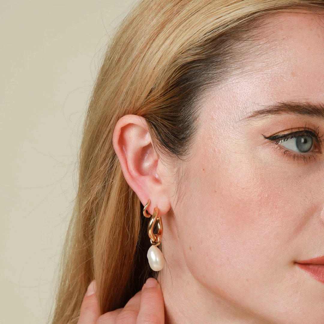 Serenity Pearl Drop Hoops in Gold – As a pair