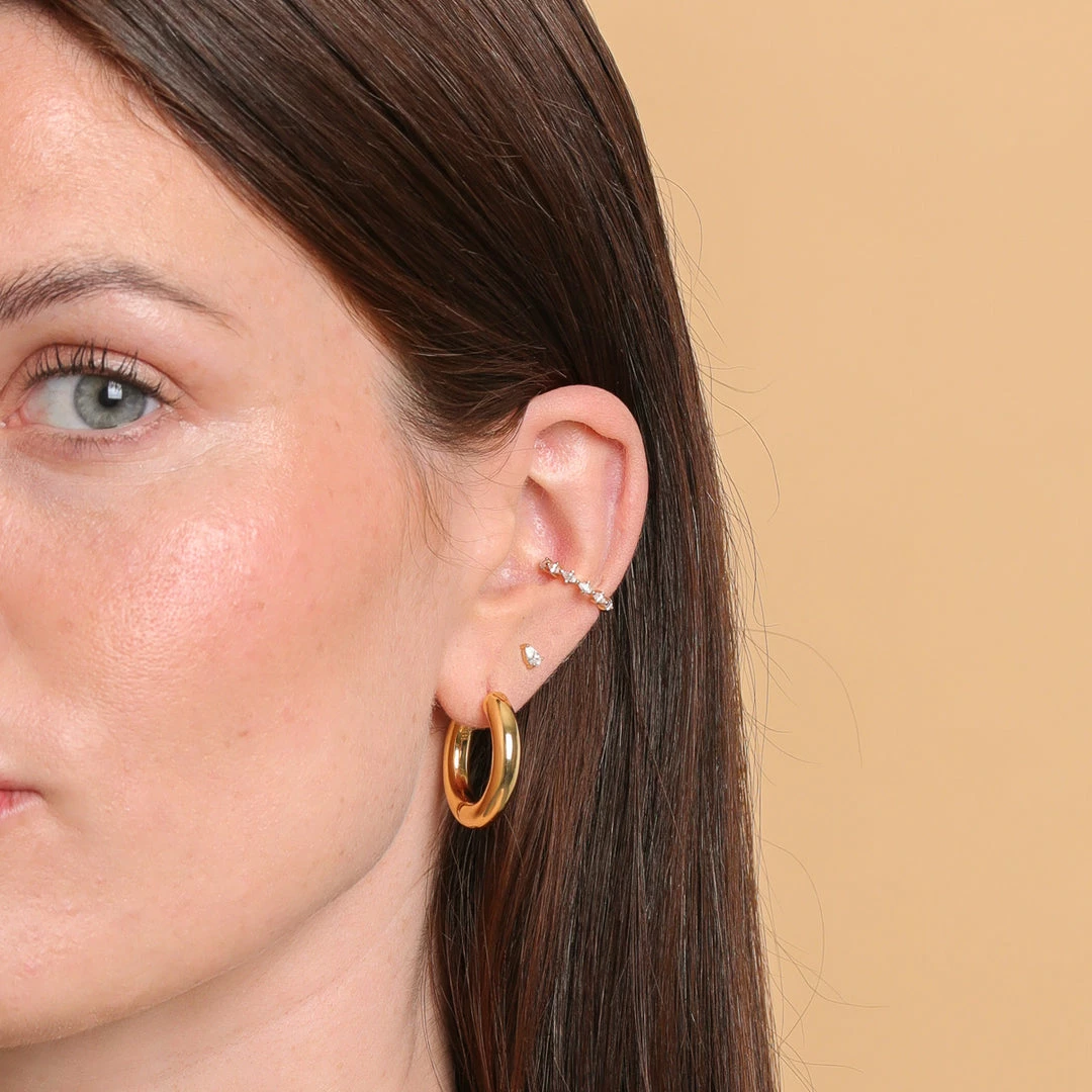 Add sparkle to your stack every day with the Pear Crystal Stud Earrings. In a timeless pear setting, these shining studs have cubic zirconia inlays to add a luxe feel to your look. Wear them alone, or stack them with your everyday hoops and huggies.