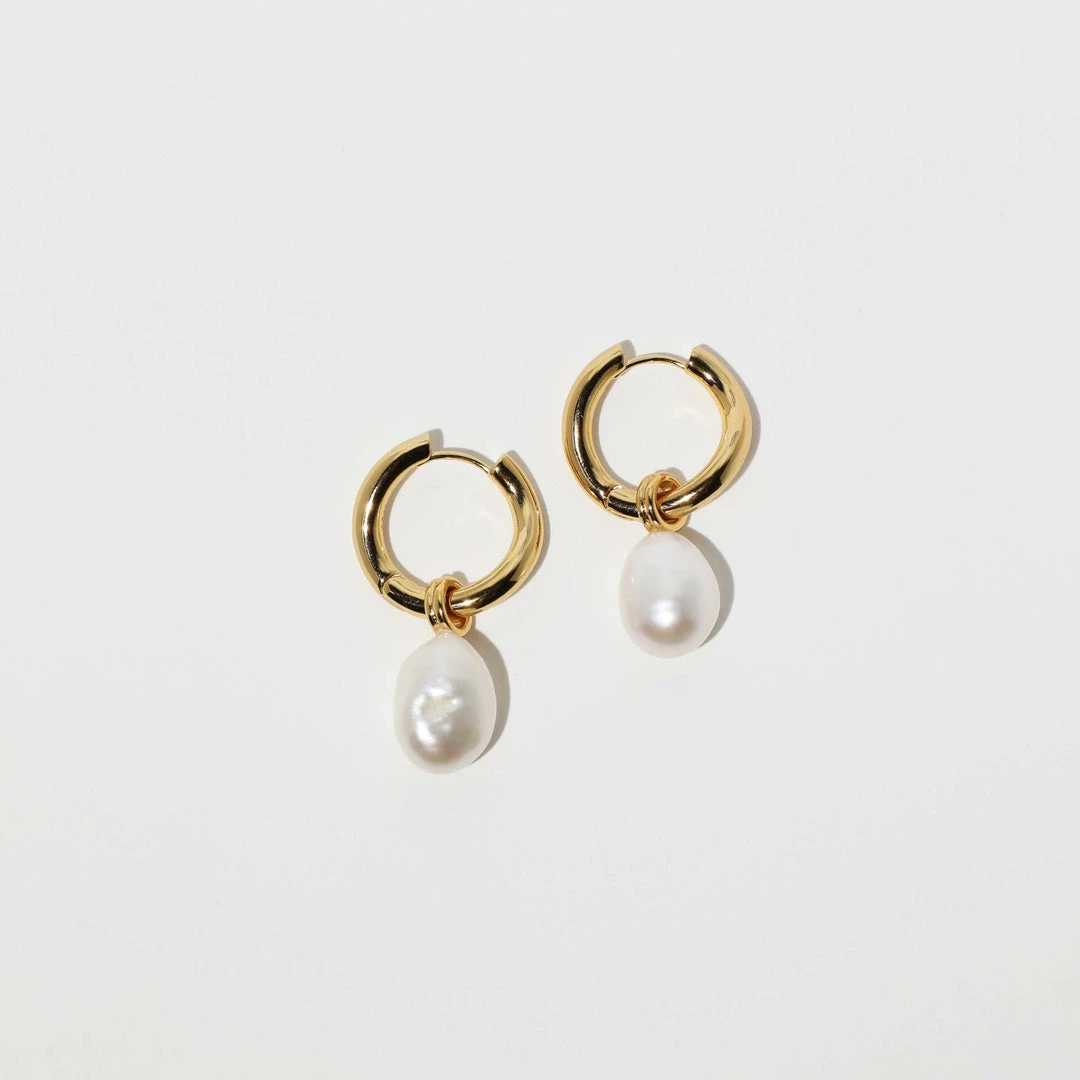 Your everyday hoops, but with a pearly plus one. The Serenity Pearl Charm Hoops in Gold are a summer staple you’ll wear all year round. In a subtle waved shape, they feature a removable freshwater pearl charm in an organic texture and a secure hinge fastening. Wear these alone for a chic look, or stack with huggies and studs for a curated finish.