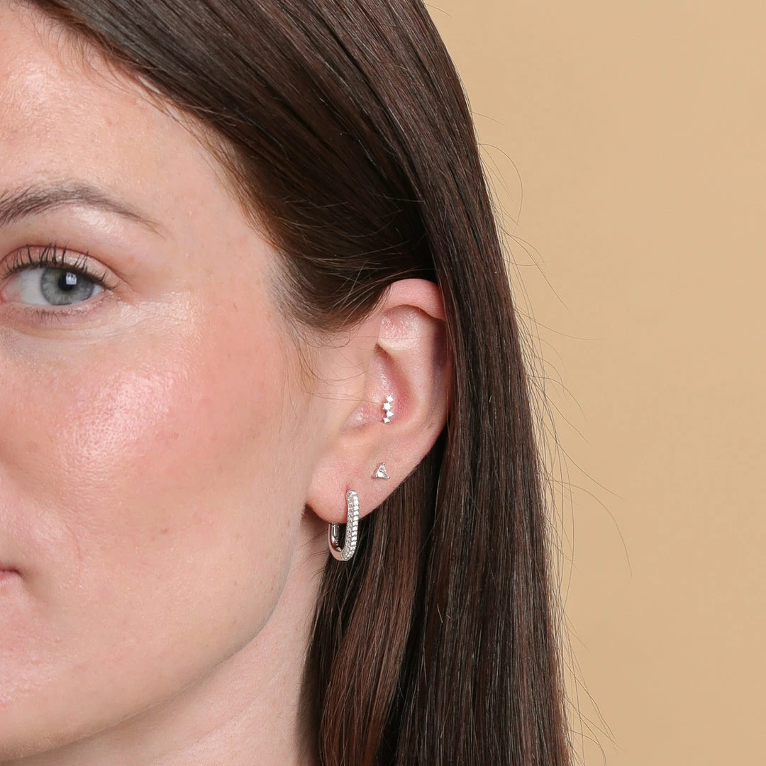 Sleek, simple and shining – the Triangle Crystal Stud Earrings are a future staple in your collection. With a dainty triangular crystal, these are the perfect way to add an extra sparkle for every day. Wear in your first lobe piercing for an understated look, or add them to second or third lobe piercings with hoops and huggies.
