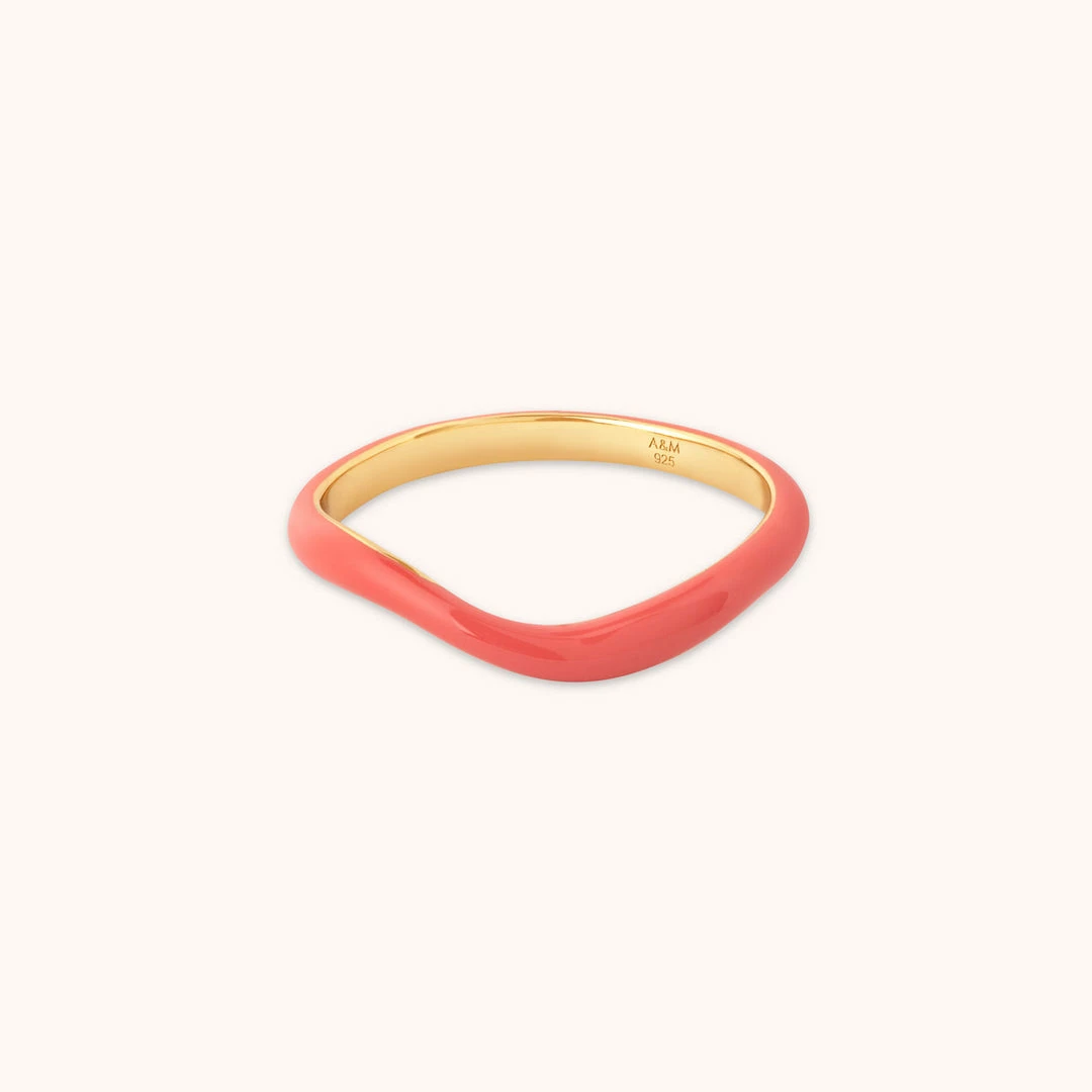 Live brightly & boldly with the Wave Coral Enamel Ring. In a curved shape with a vibrant coral enamel coating, this ring is the ultimate summer piece. Designed to be stacked with the Wave Ring & Wave Crystal Ring, this gives 70s vibes but with a modern twist.
