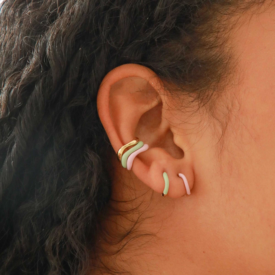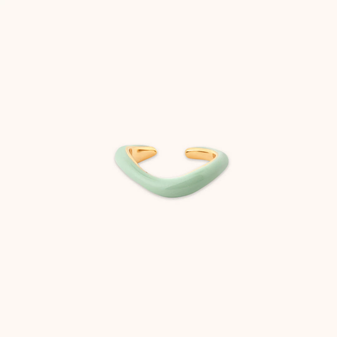 Summer is the time to experiment with fun and colour, and what better way than with the Wave Mint Enamel Ring? Featuring a curved shape with a mint green enamel coating, this cuff adds a pop of colour to any stack. Wear alone, or with the Wave Ear Cuff to add a statement.