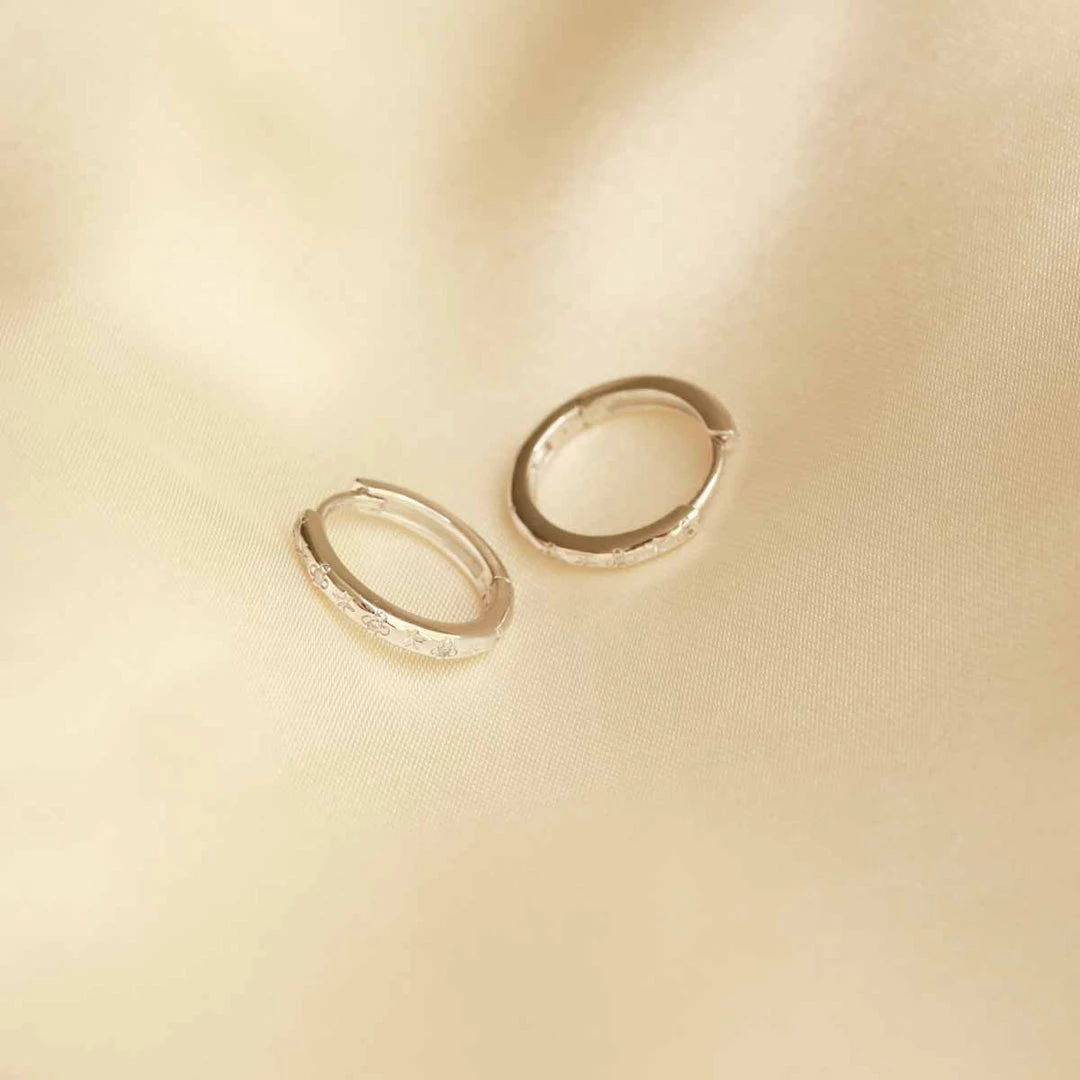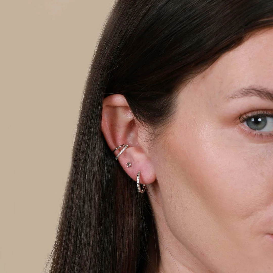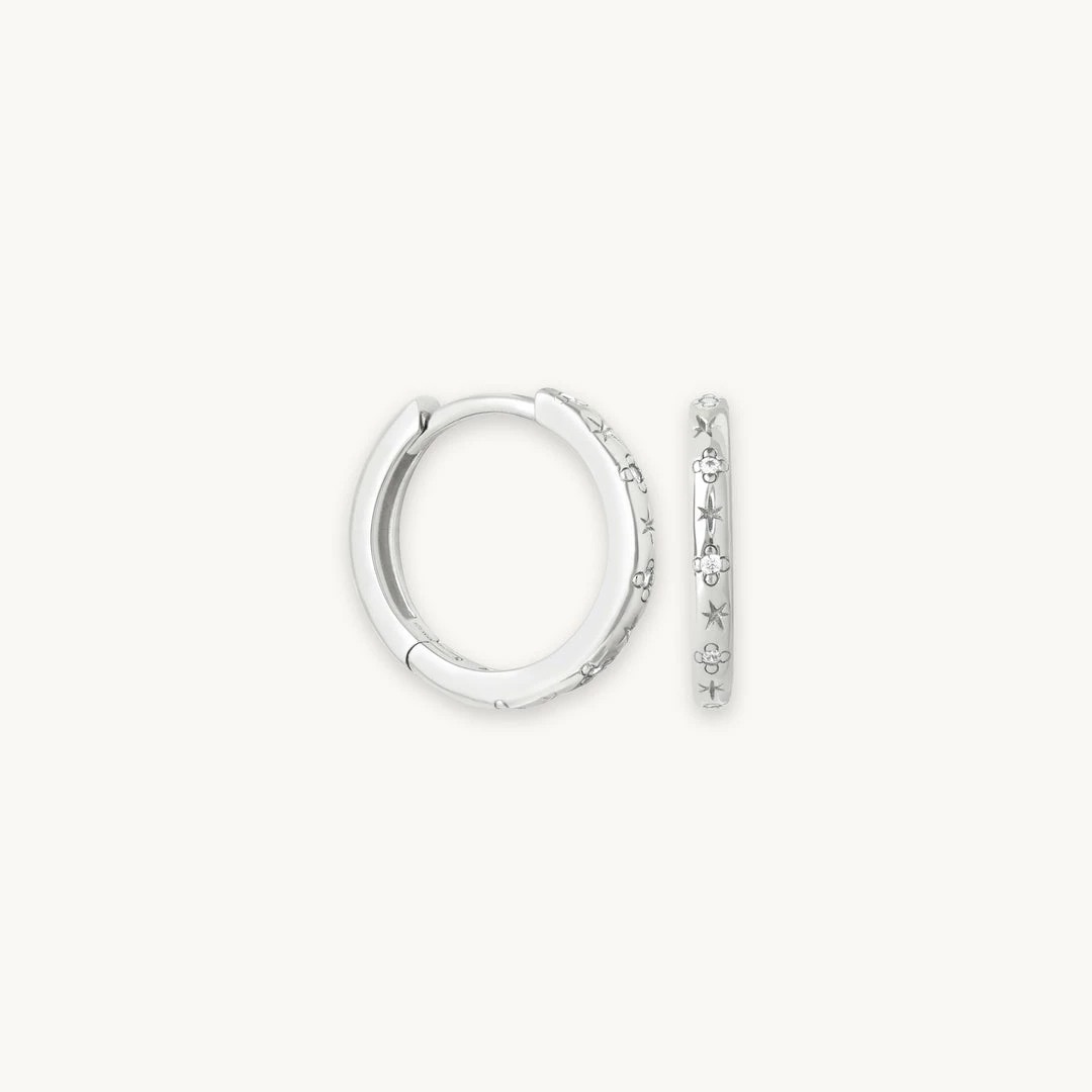 Add texture & sparkle to your lobes with the Prism Crystal Hoops in Silver, featuring dainty engraving to add a mystic vibe. It’s the perfect way to subtly draw attention to your piercings ~ wear this alone or stack with huggies & studs for a curated look.