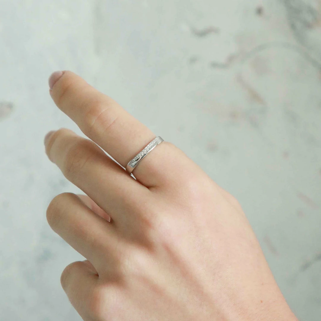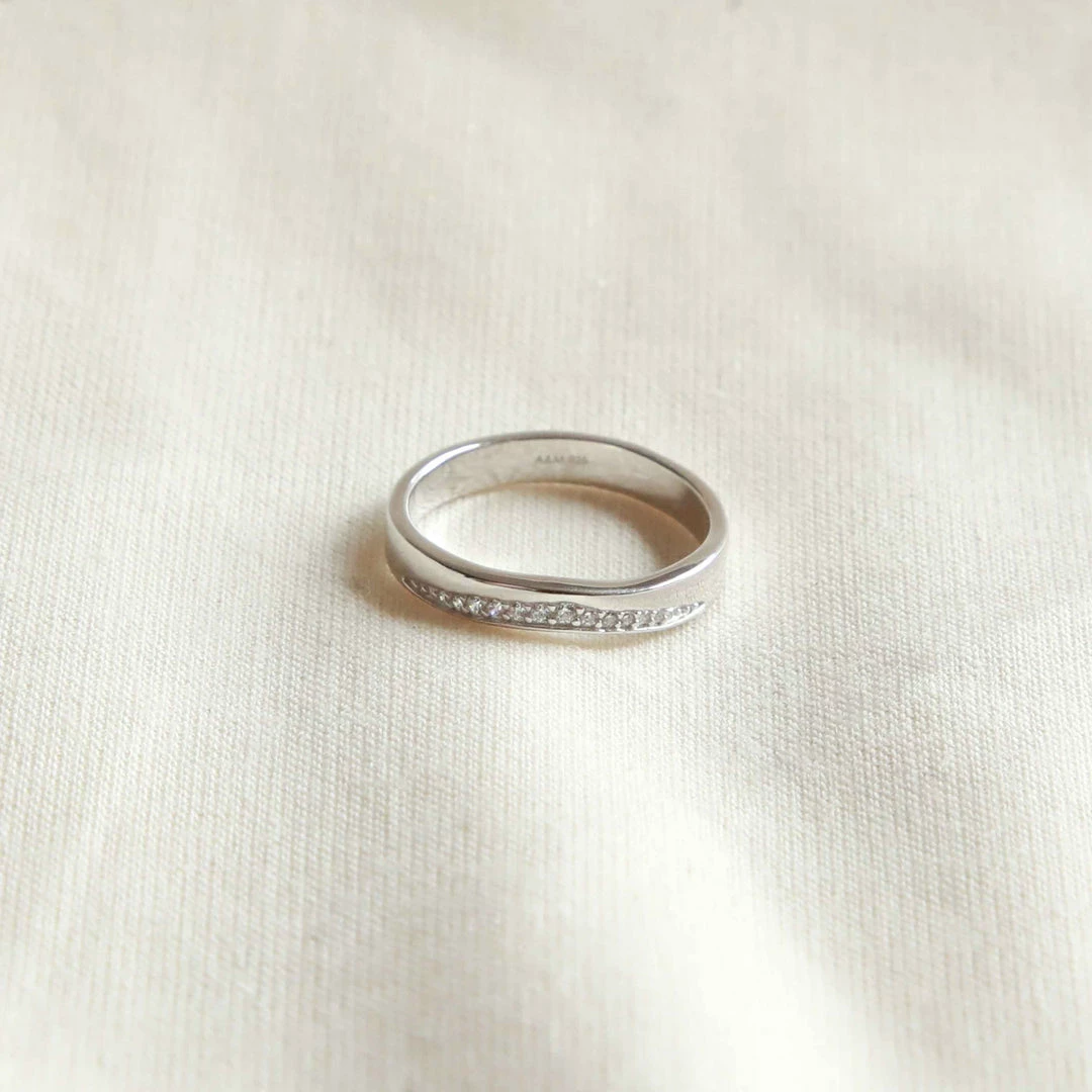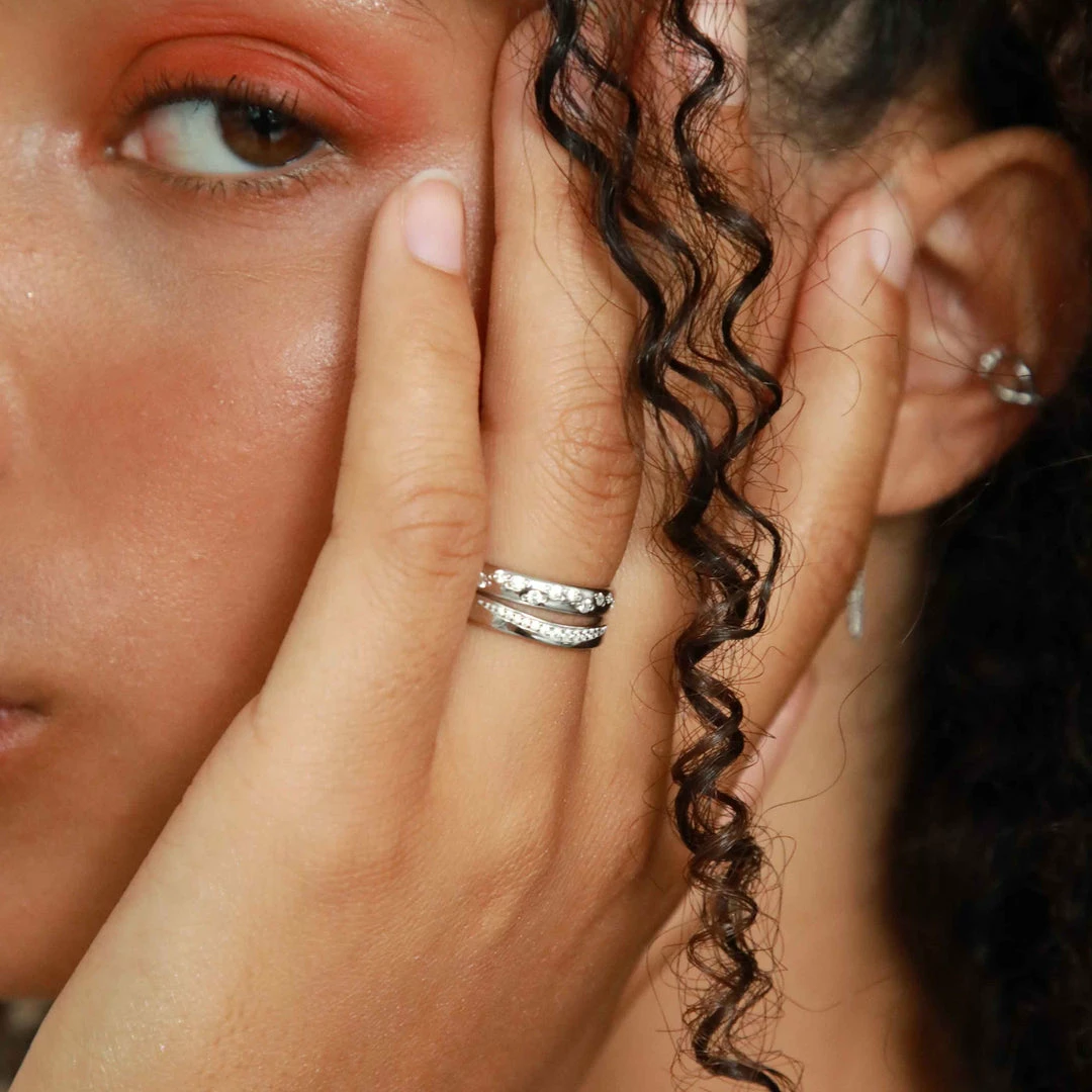 Ring stacking, the recycled way. The Ara Ring in Silver is made from recycled sterling silver & is paved in cubic zirconias so your fingers can stay shining. It’s not too dainty & not too chunky, meaning that it will fit in with you vibe, whatever your ring stacking style. Pair this with the Etched Band Ring and the Ara Hoops for a look you’ll want to wear all day, every day.