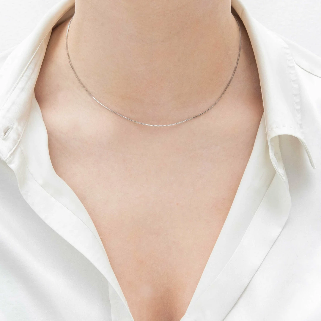 The Fine Box Chain in Silver is an elevated classic. Think minimal effort but maximum impact. Team it with any of our necklace charms for a look that matches your style.