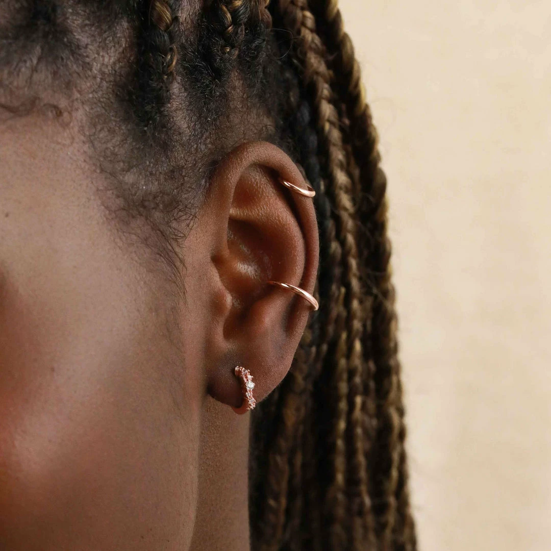 How do you like your earrings? We like ours gleaming. The Gleam Crystal Huggies in Rose Gold feature dainty cubic zirconias for a sparkling look. They’re the perfect way to add an eye-catching feature to your stack, whilst still keeping it suitable for everyday. Wear alone or stack with ear cuffs & hoops.
