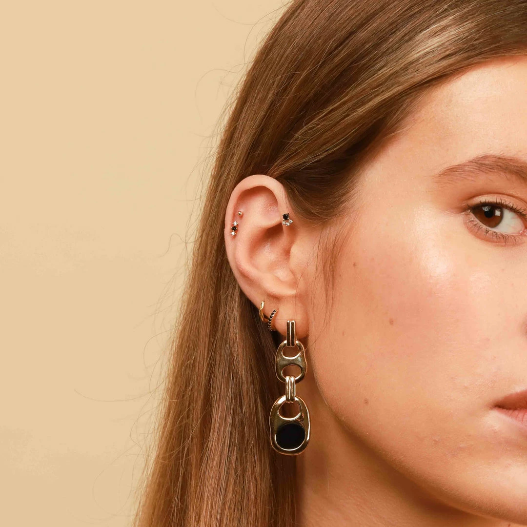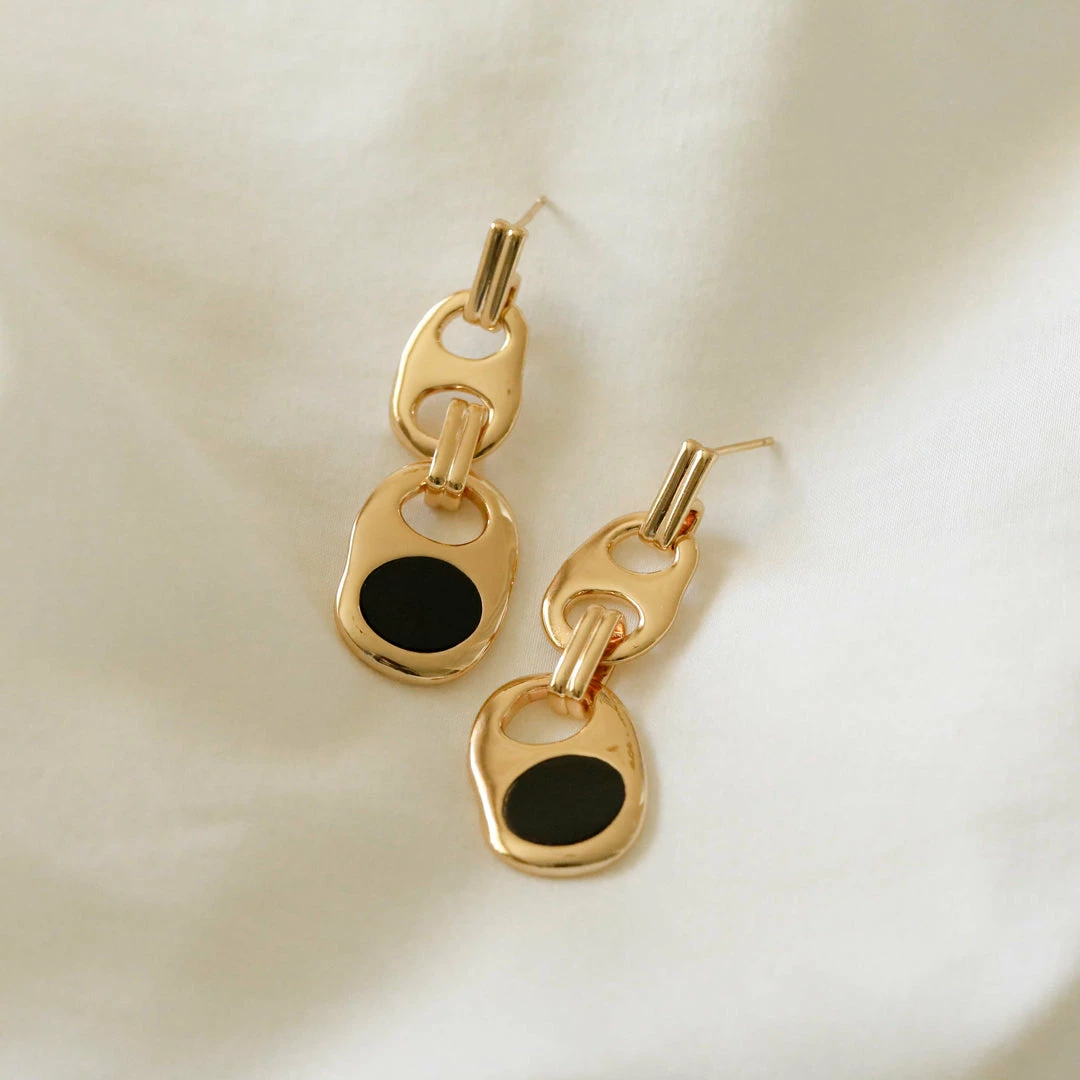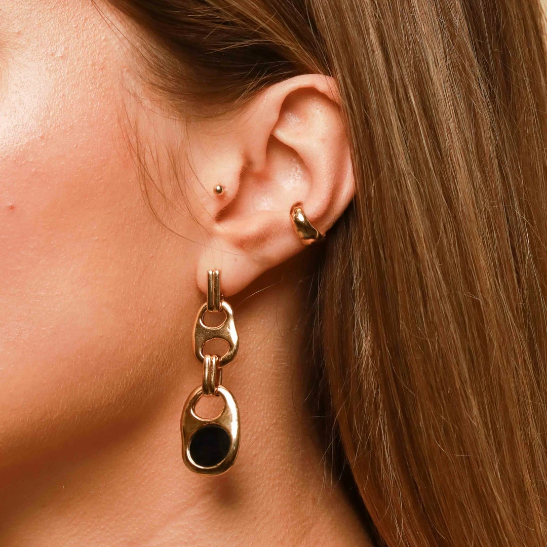 Statement earrings to elevate your stack ~ the Mariner Chain Stud Earrings in Gold add a vintage vibe to your look with their chunky chain drop. Featuring Semi-Precious Black Onyx stones, these are the perfect way to make your new season entrance.