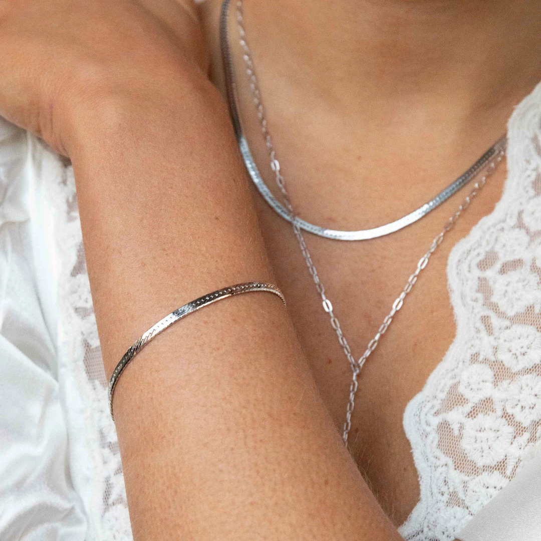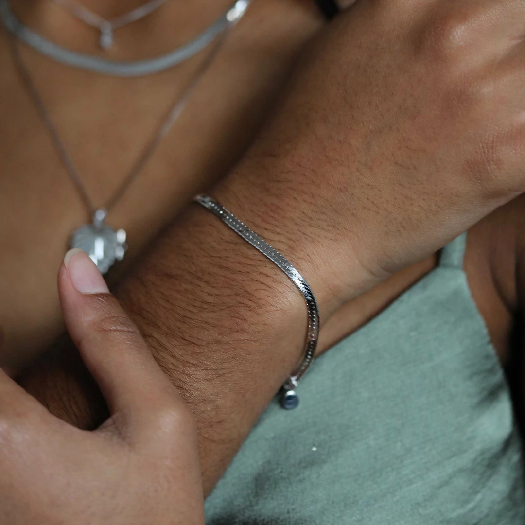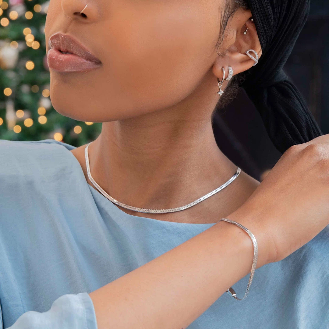 The reign of the snake chain continues, and this time in bracelet form. The Snake Chain Bracelet in Silver is super simple, but catches the light in an effortlessly chic way. Wear alone, or stack with your fave bracelets for a curated look – it’s a must-have staple piece in any jewellery collection.