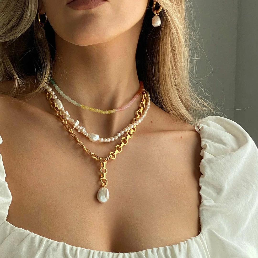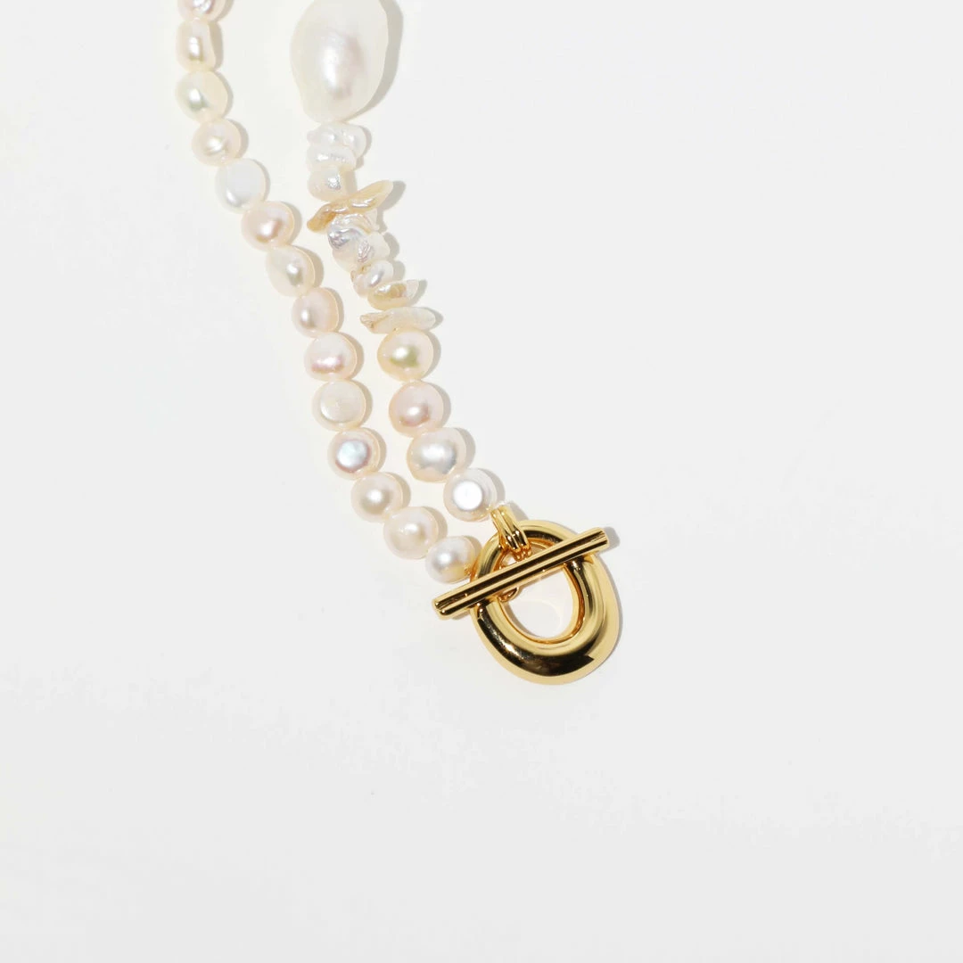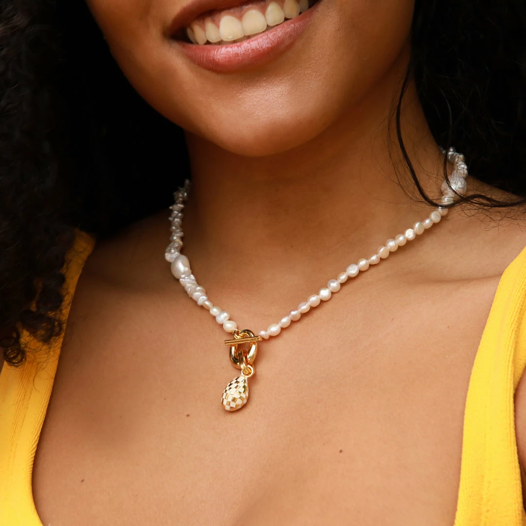 A pearl of wisdom: the Serenity Pearl Beaded T-Bar Necklace in Gold is the perfect addition to your summer stack. With freshwater pearls in organic shapes and textures, this necklace features a bold T-bar closure to add a sparkly touch. Perfect for summer getaways and events, this timeless necklace will take you through all the seasons – making it a dreamy investment piece.