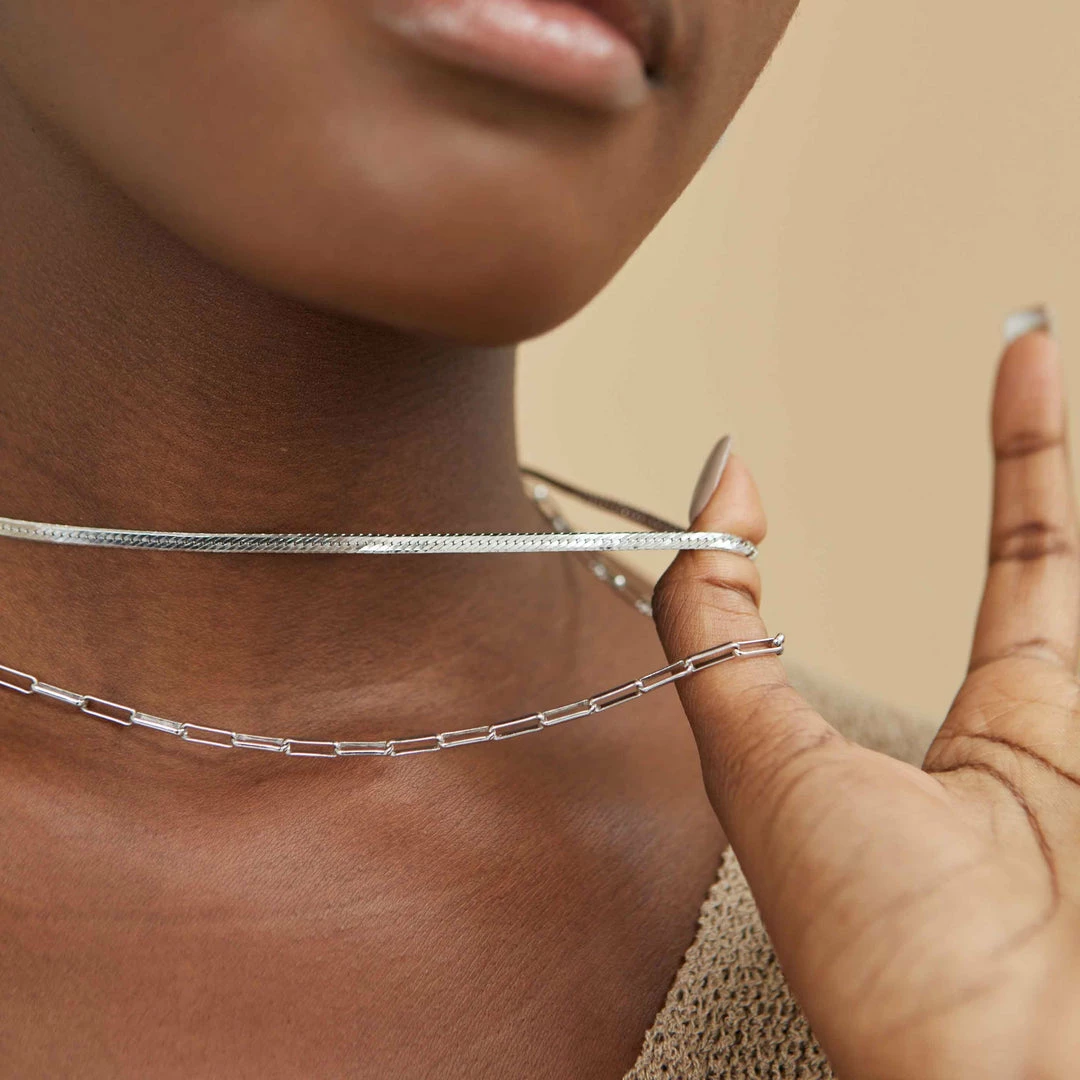The chain necklace reign is still going strong, and the Snake Chain Necklace in Silver is the newest addition to our collection. Totally unique, this is a staple piece that everyone needs in their jewellery box. Wear with chunky chains, dainty chains, pendants – the list goes on…Â
